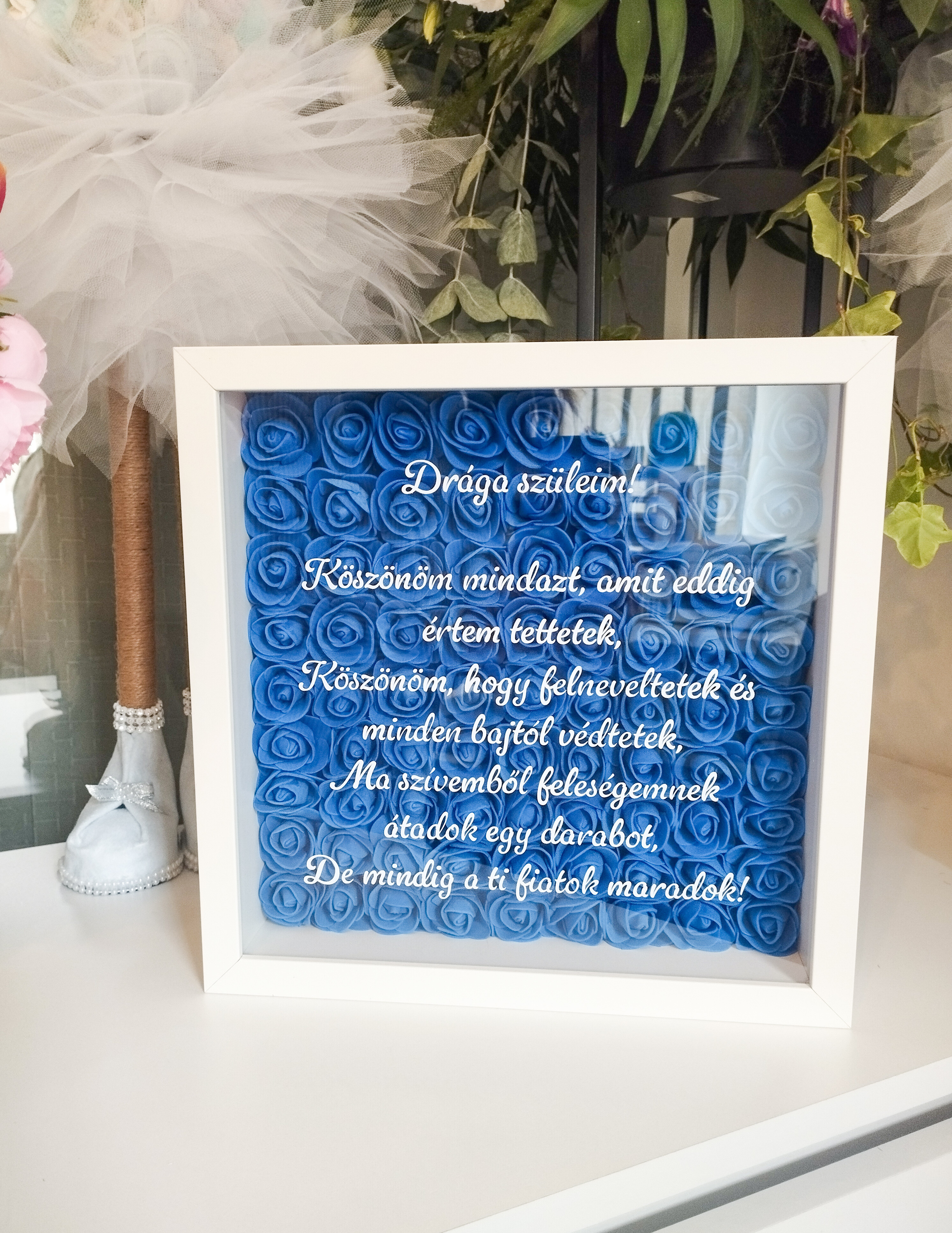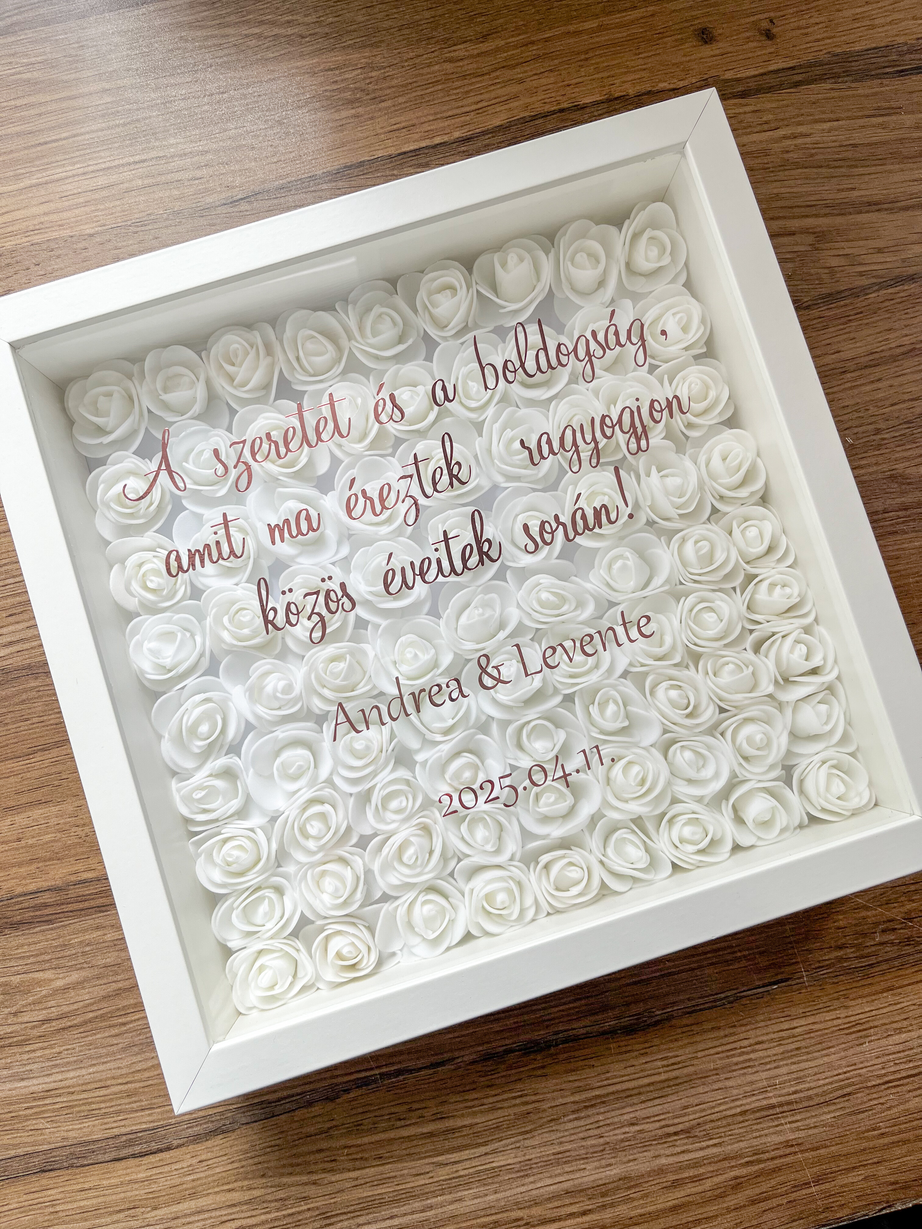 Kézzel készül, aprólékosan összeállított rózsákból, igényes keretben, választható felirattal és színben. A doboz nemcsak ajándék, hanem örök emlék és dekoráció is, amely bármely enteriőrt megszépít.