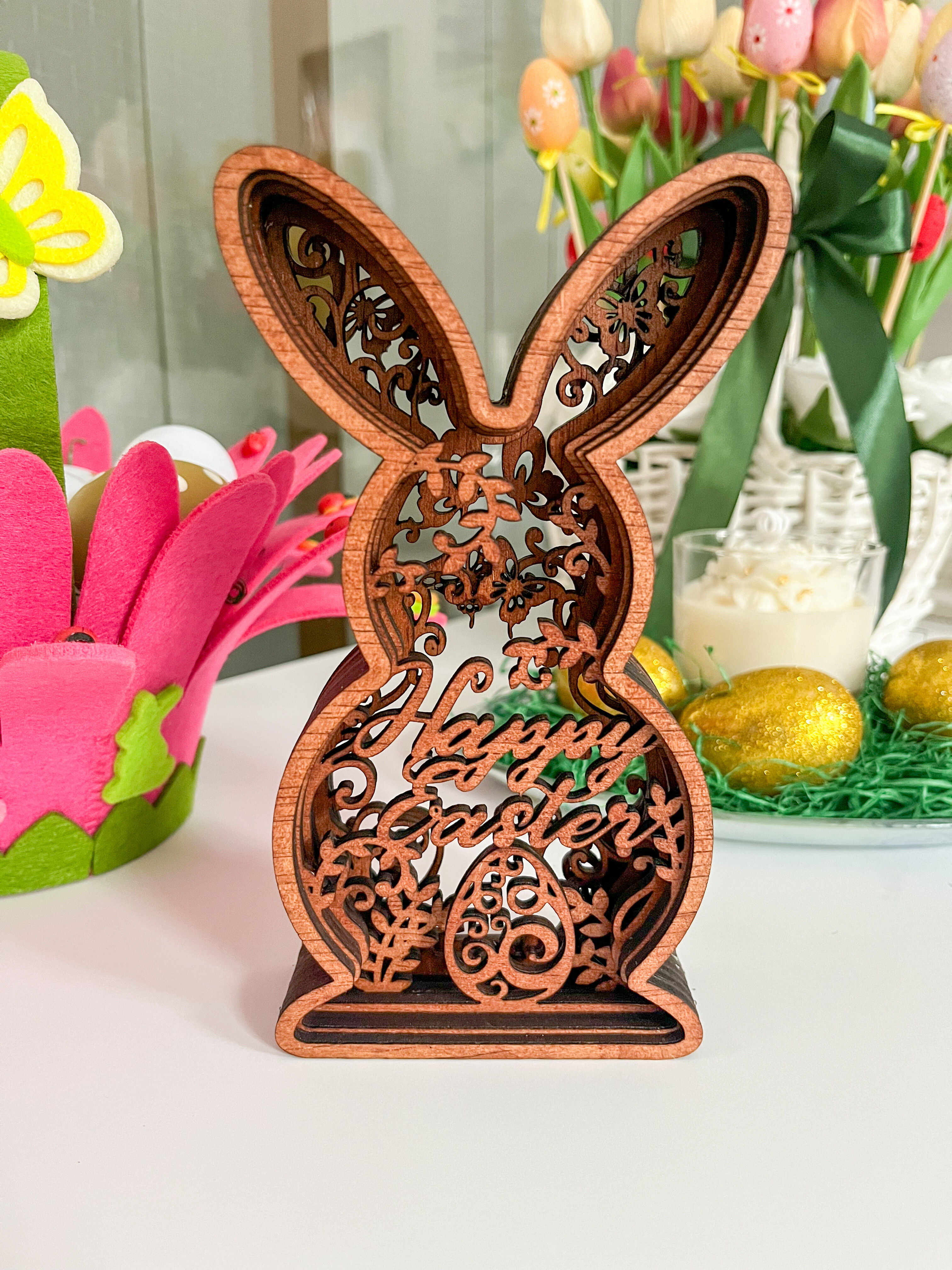 Fából készült, 3D-s húsvéti nyuszi dekoráció