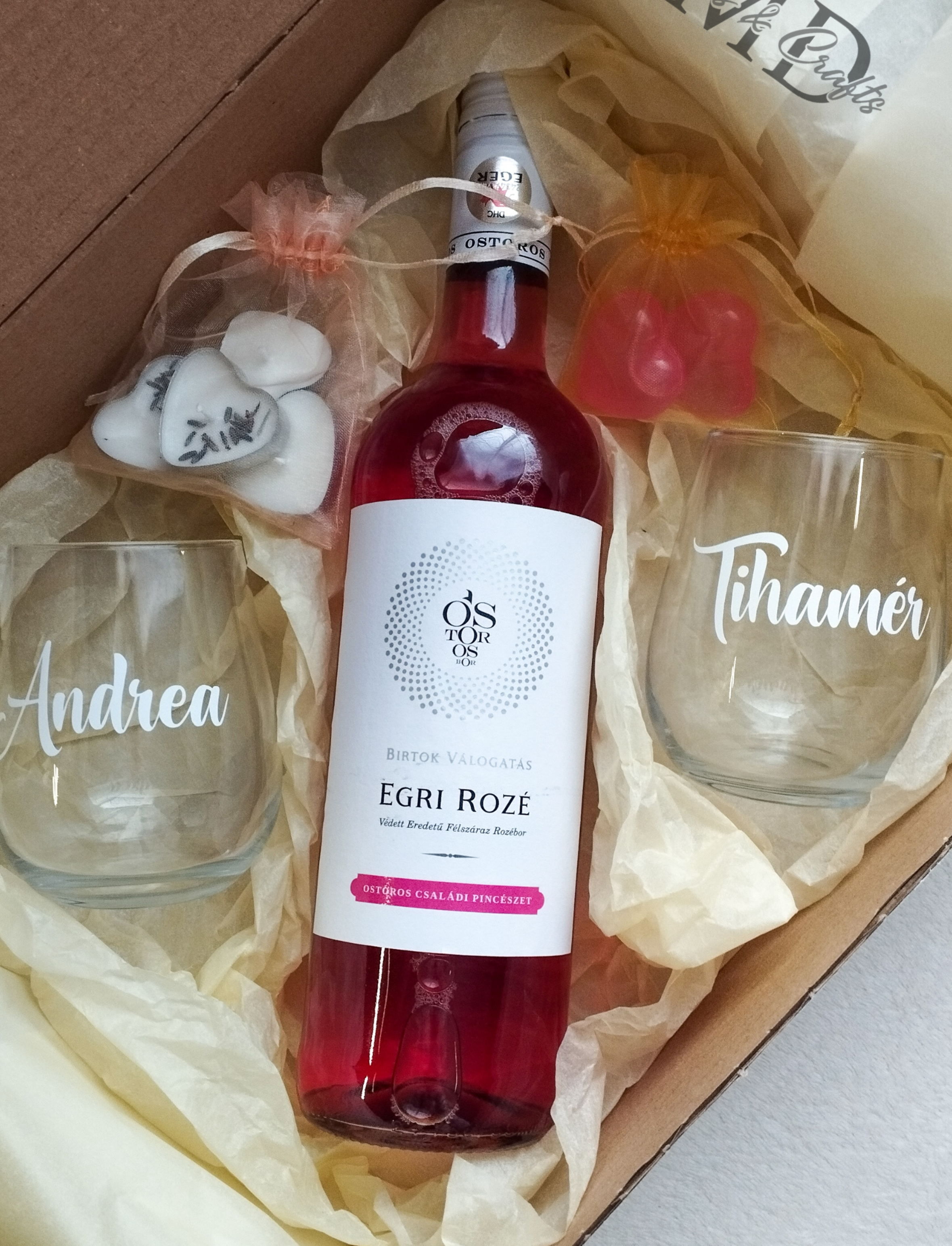 A személyre szabott poharak miatt ez nem csak egy ajándék, hanem egy élmény is: közös koccintás, egy meghitt este, emlék, ami megmarad.