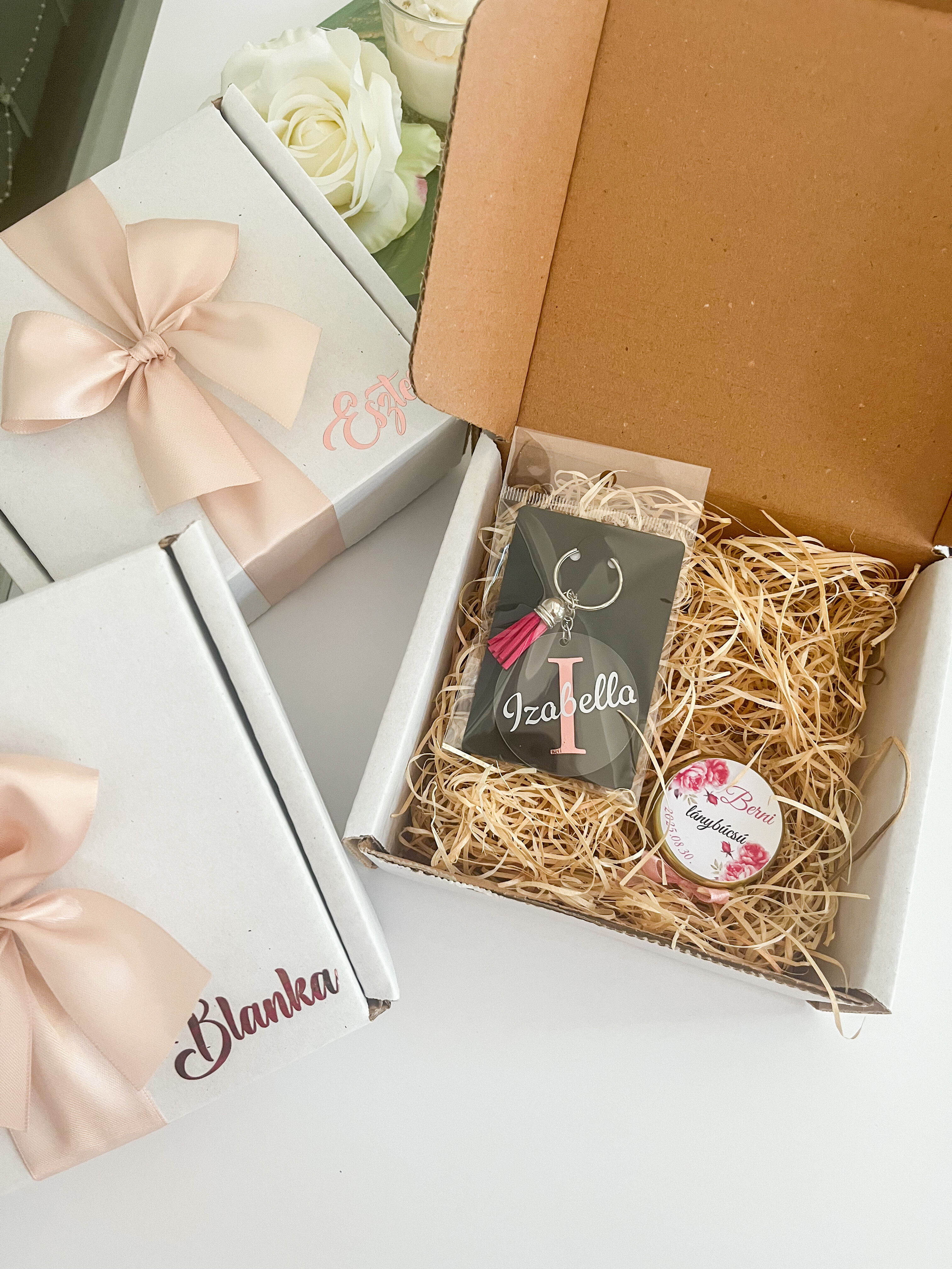 A doboz szaténszalaggal díszített, így az ajándék már az első pillanatban elbűvölheti a megajándékozottat.