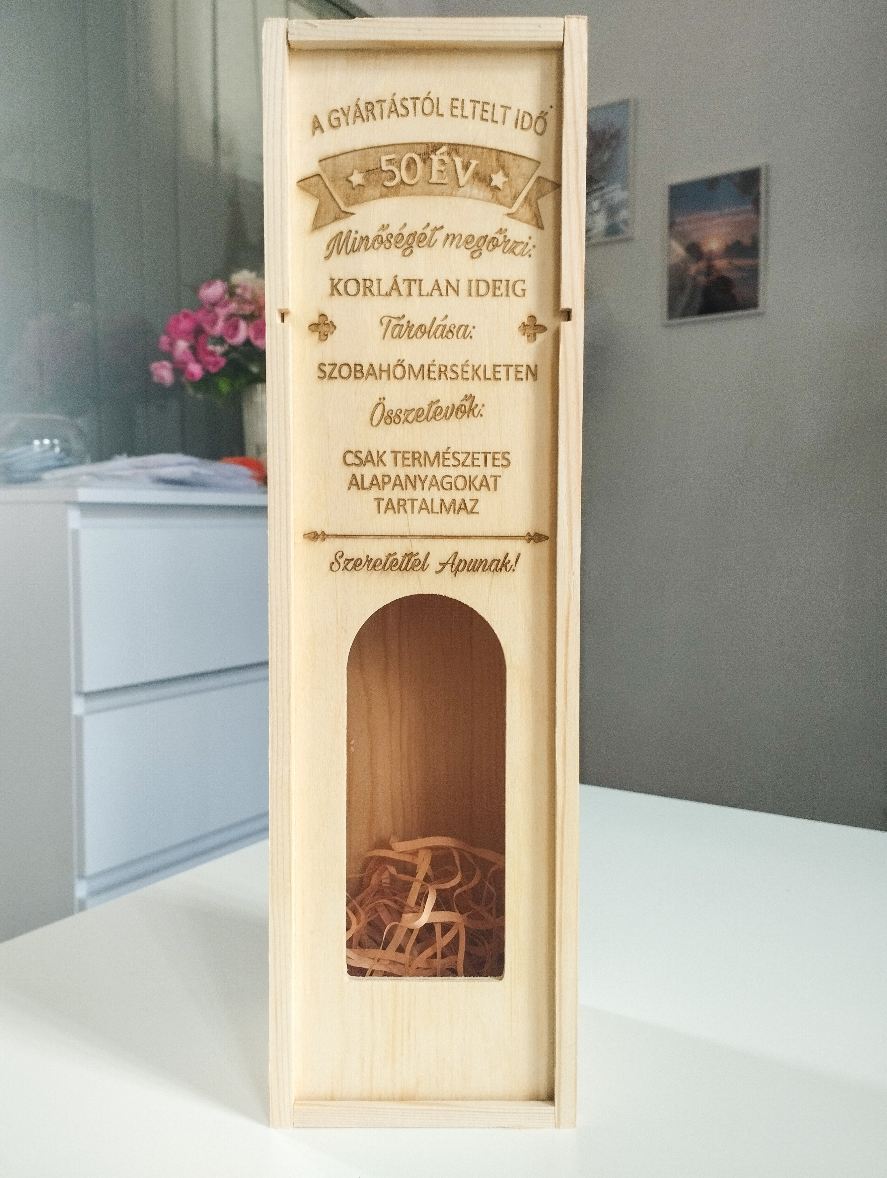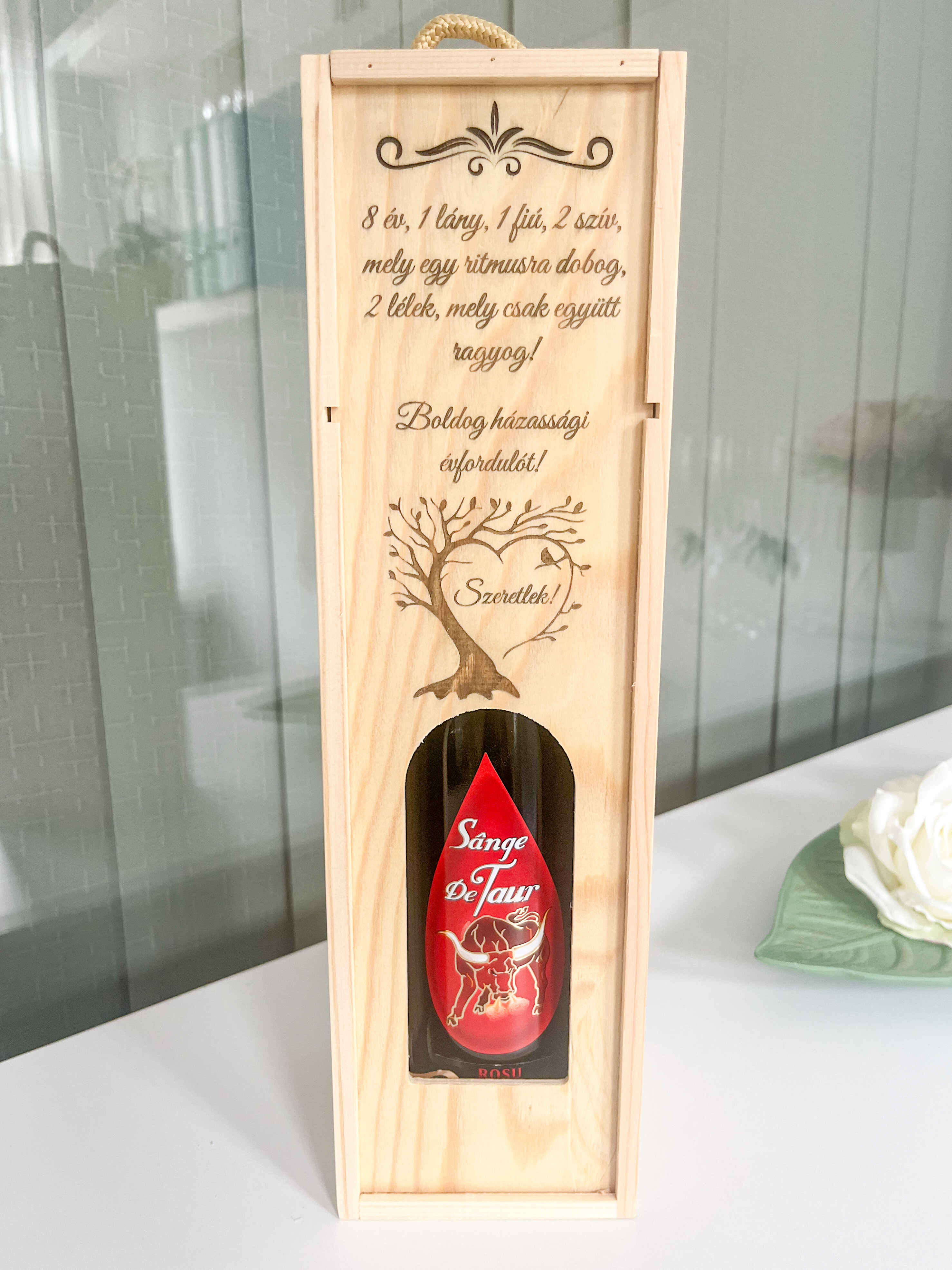 Egy üveg bor önmagában is szép gesztus, de ha személyes üzenettel érkezik, máris örök emlékké válik. Ezek a természetes fából készült bortartó dobozok elegáns, időtálló ajándékok, amelyek bármilyen alkalomra tökéletesek. Születésnapra, apák napjára, esküvőre, évfordulóra stb.