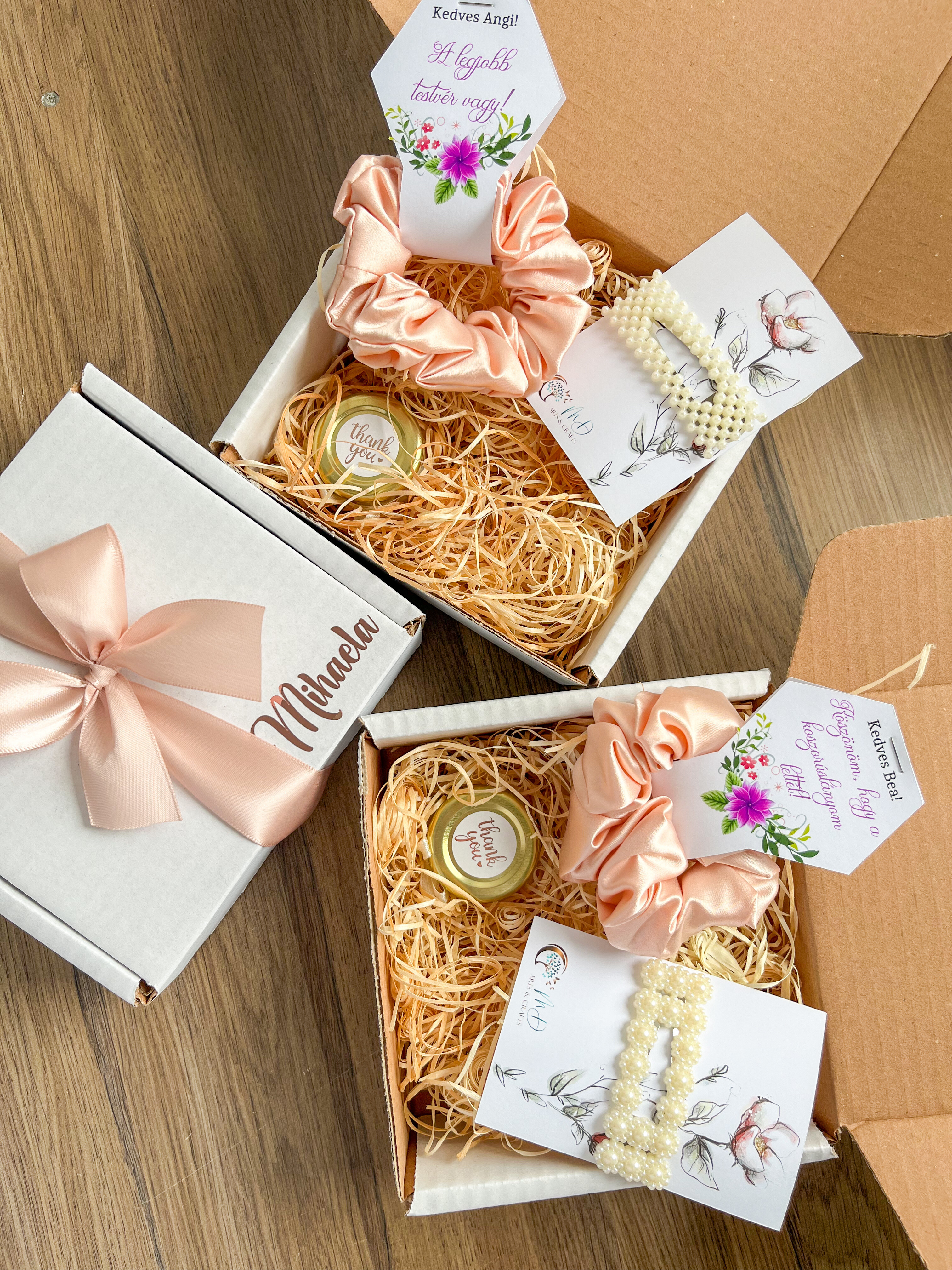 Elegáns, nőies és szeretettel összeállított meglepetésdoboz, amely tökéletes választás koszorúslányoknak.
