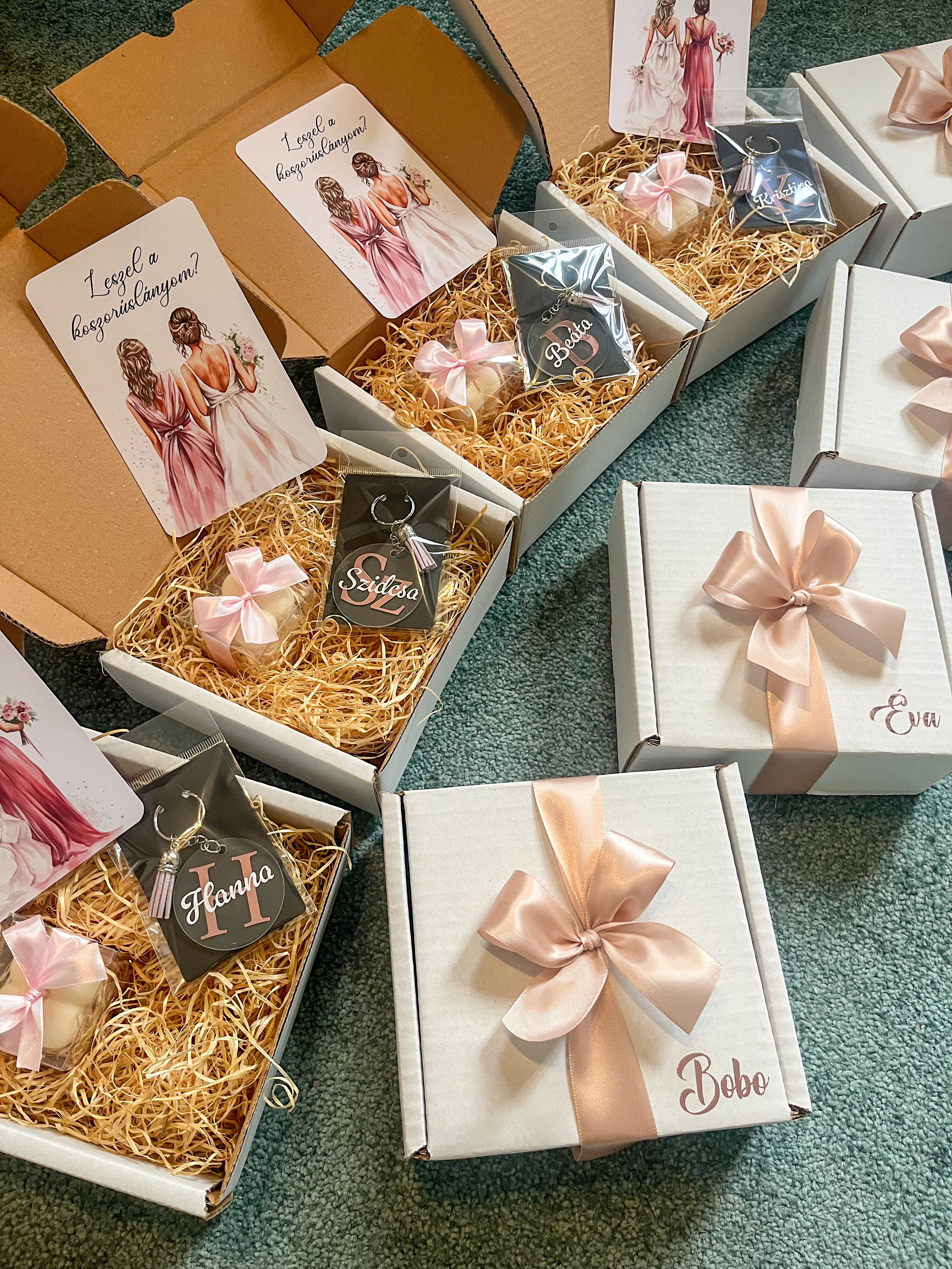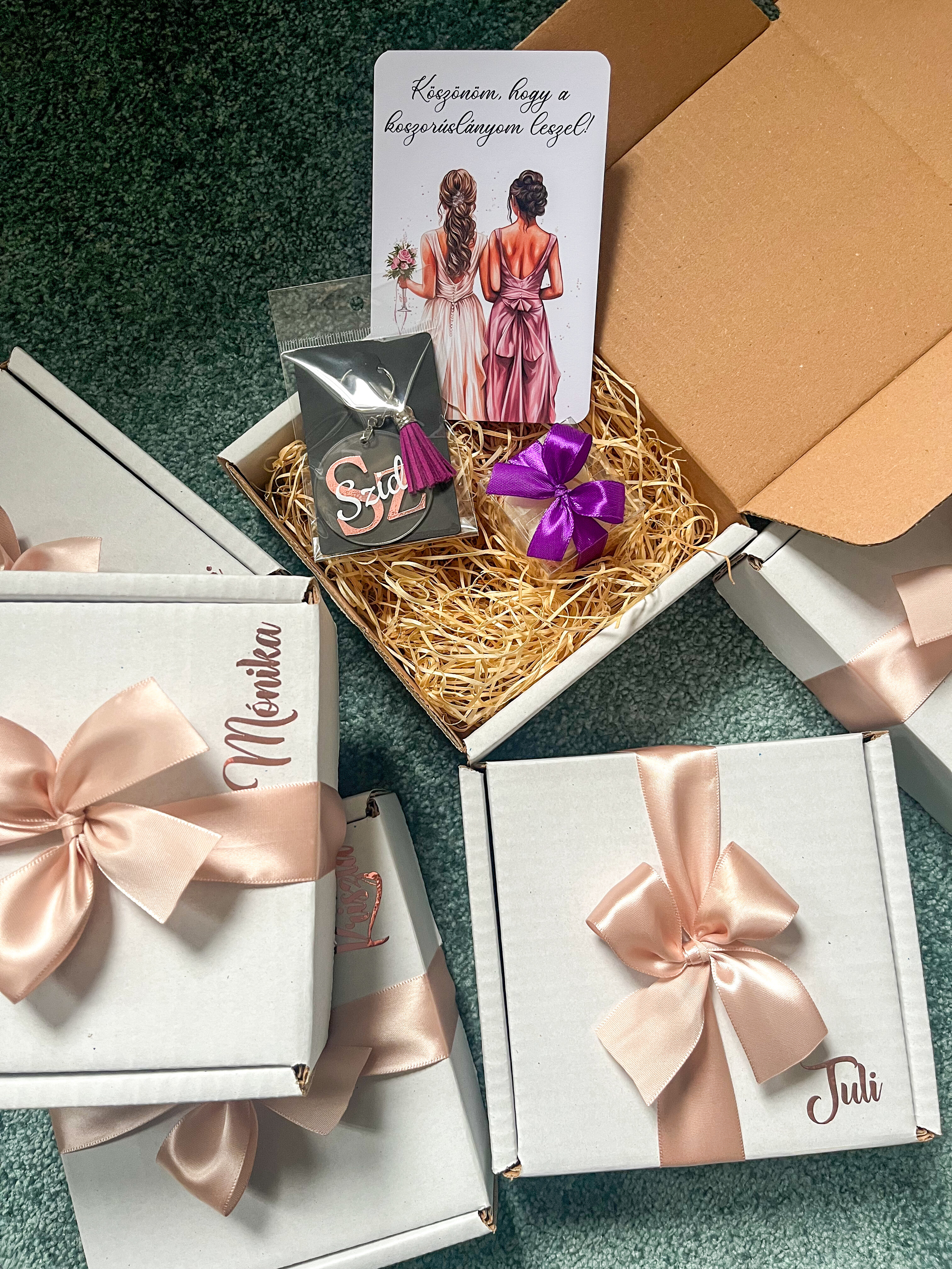 Elegáns, nőies és szeretettel összeállított meglepetésdoboz, amely tökéletes választás koszorúslányoknak.