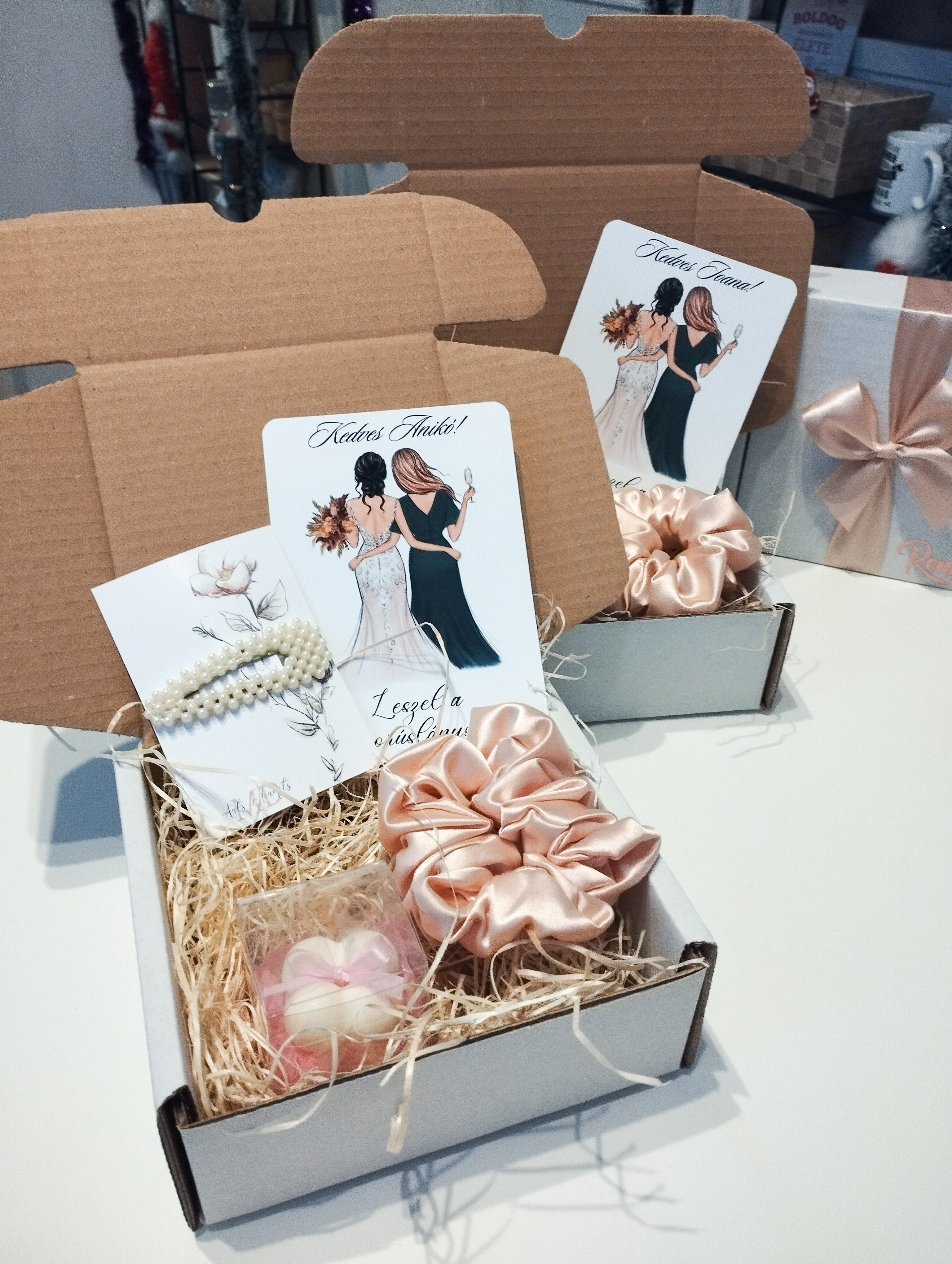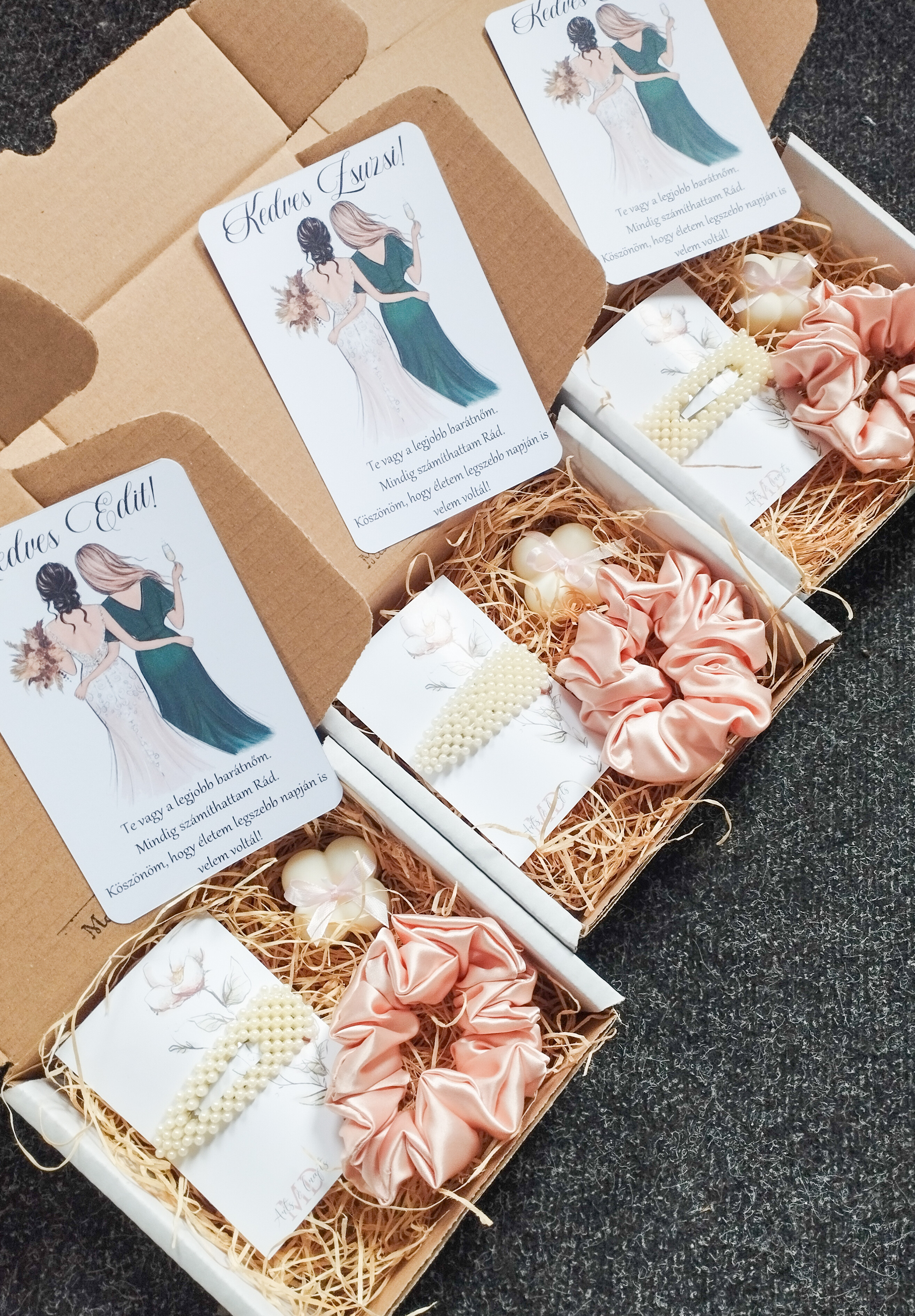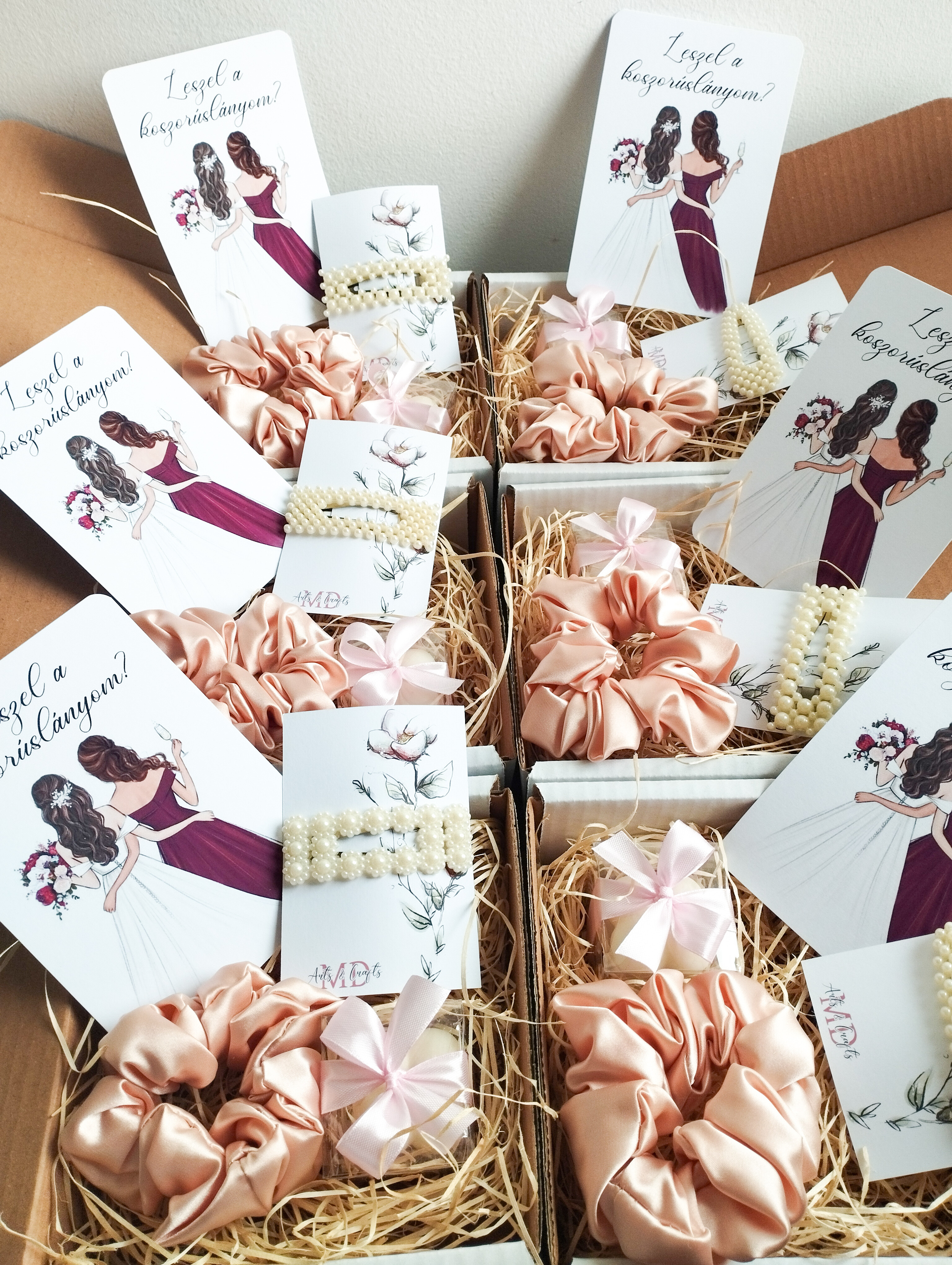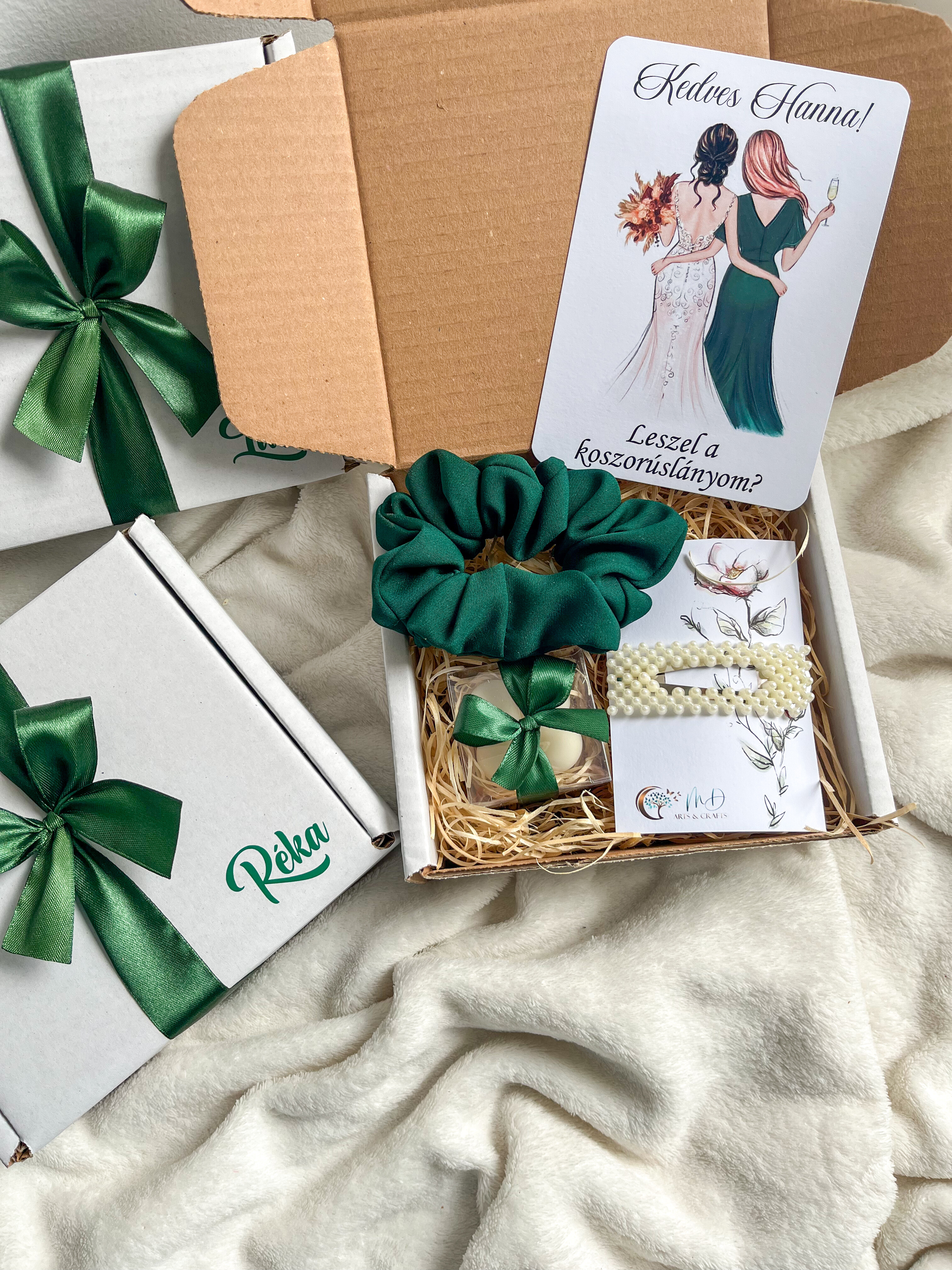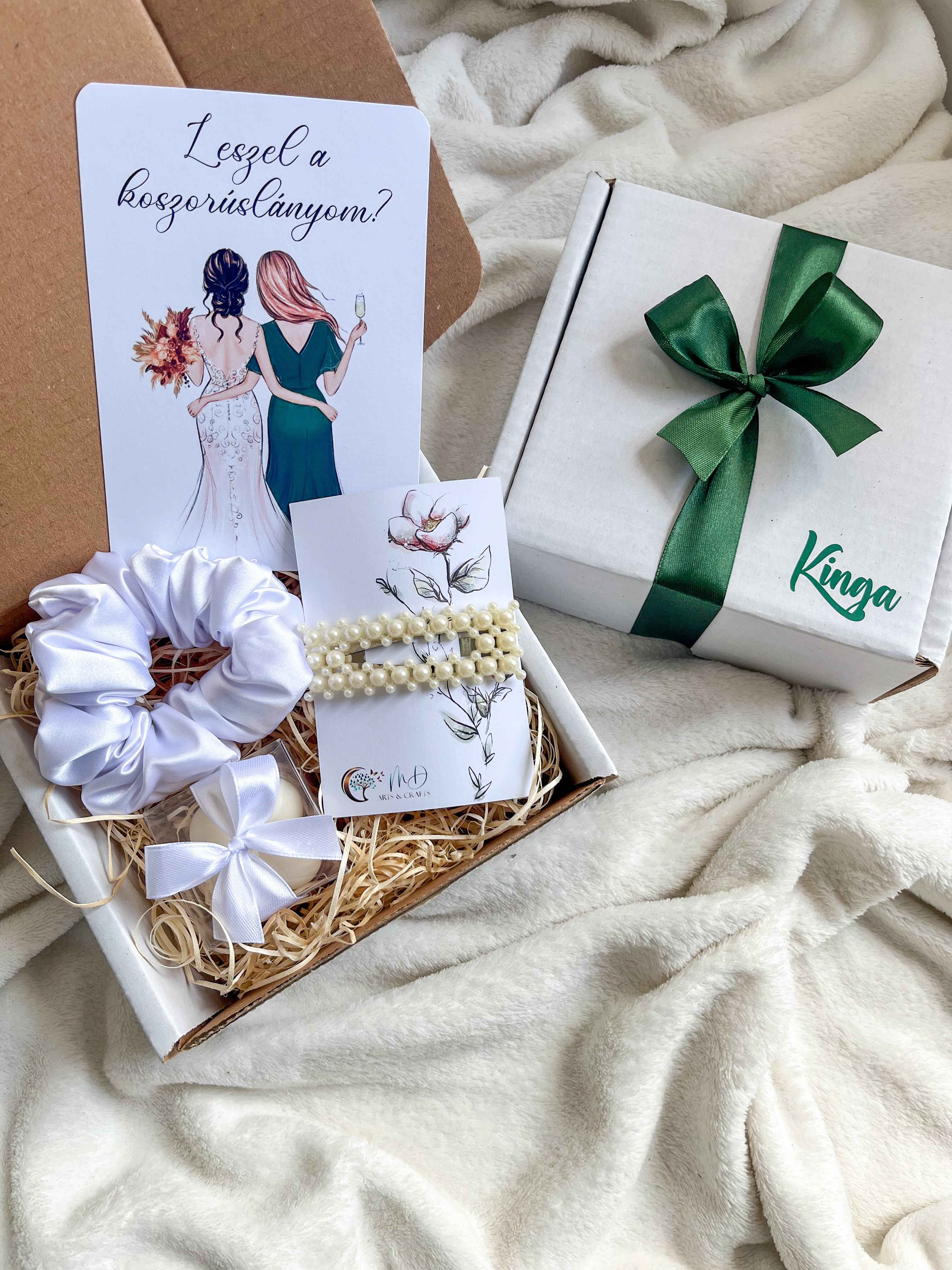 Elegáns, nőies és szeretettel összeállított meglepetésdoboz, amely tökéletes választás koszorúslányoknak.