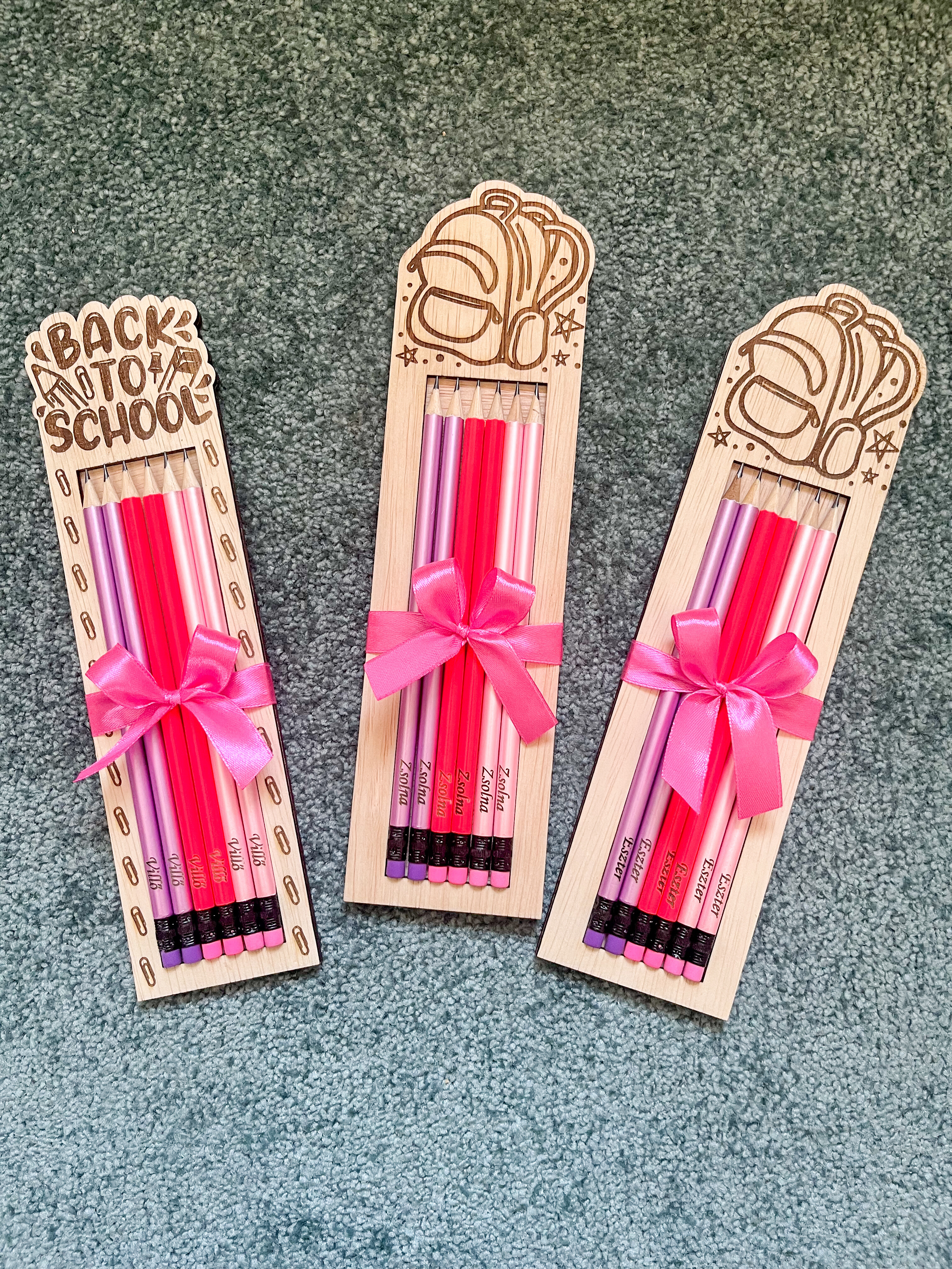 Ezek a névvel gravírozott ceruzák nemcsak szépek, hanem praktikusak is, többé nem keverednek el az iskolában vagy a munkahelyen és még különleges fából készült tartó is jár hozzájuk, masnival átkötve.