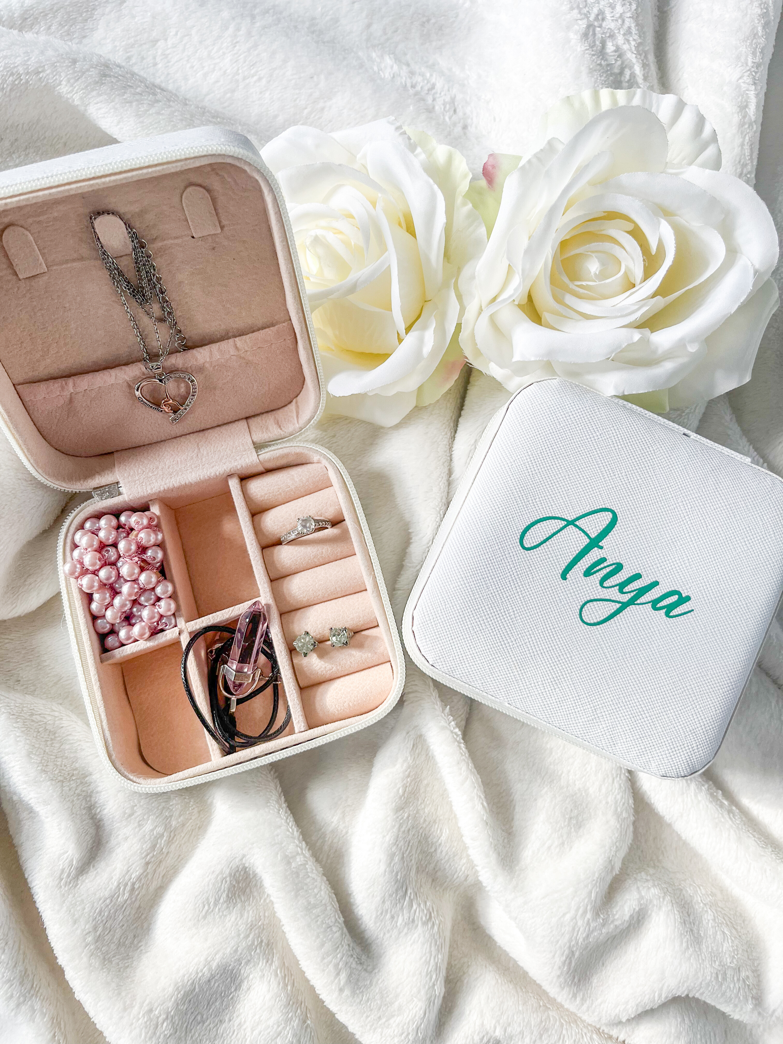 Elegáns, praktikus és személyre szabható, ez a névvel ellátott ékszertartó tökéletes választás mindazoknak, akik szeretik, ha kedvenc ékszereik mindig rendezetten és biztonságban vannak. Kompakt méretének köszönhetően ideális utazáshoz is, így bárhová magaddal viheted kedvenc kincseidet.