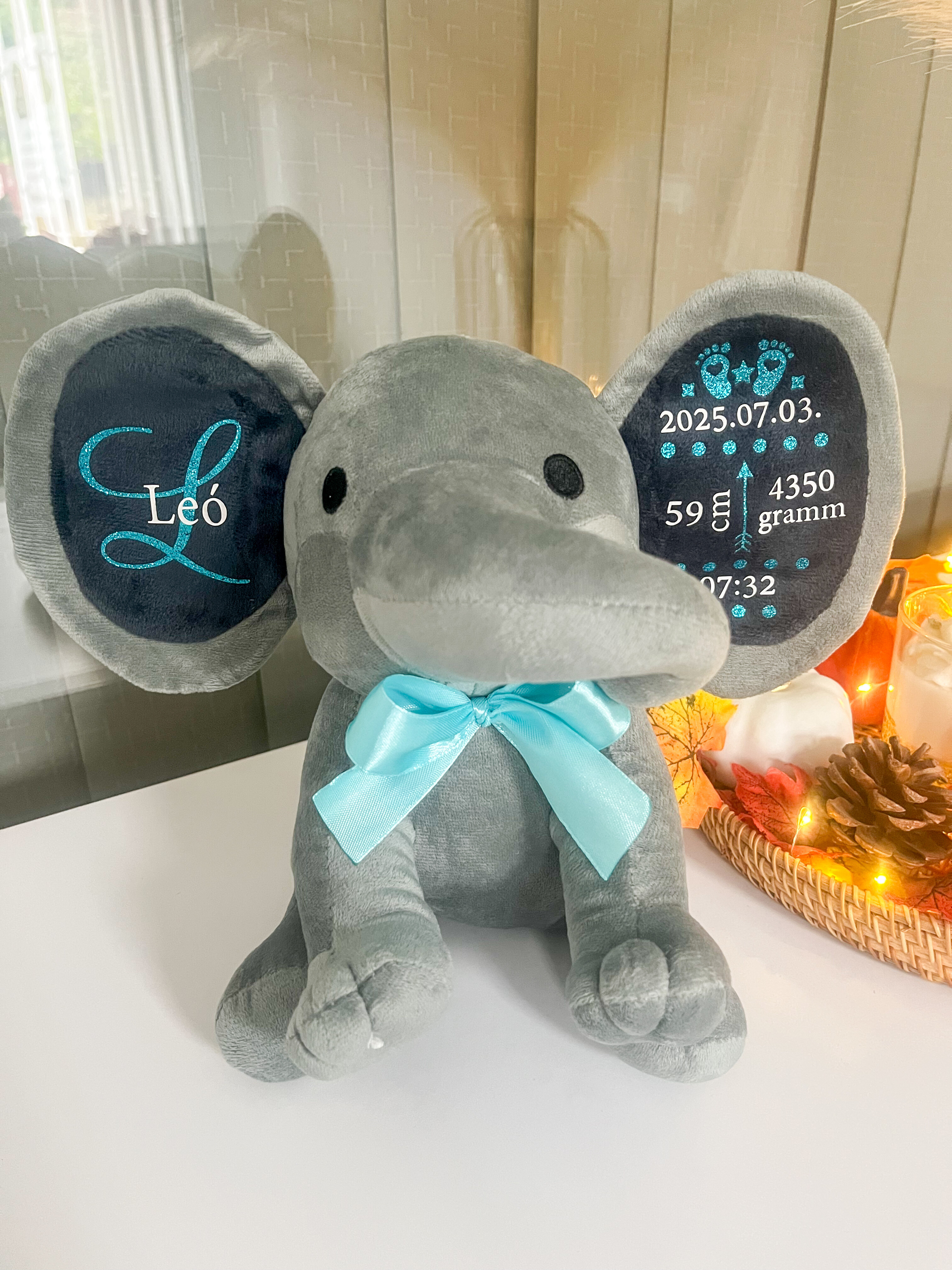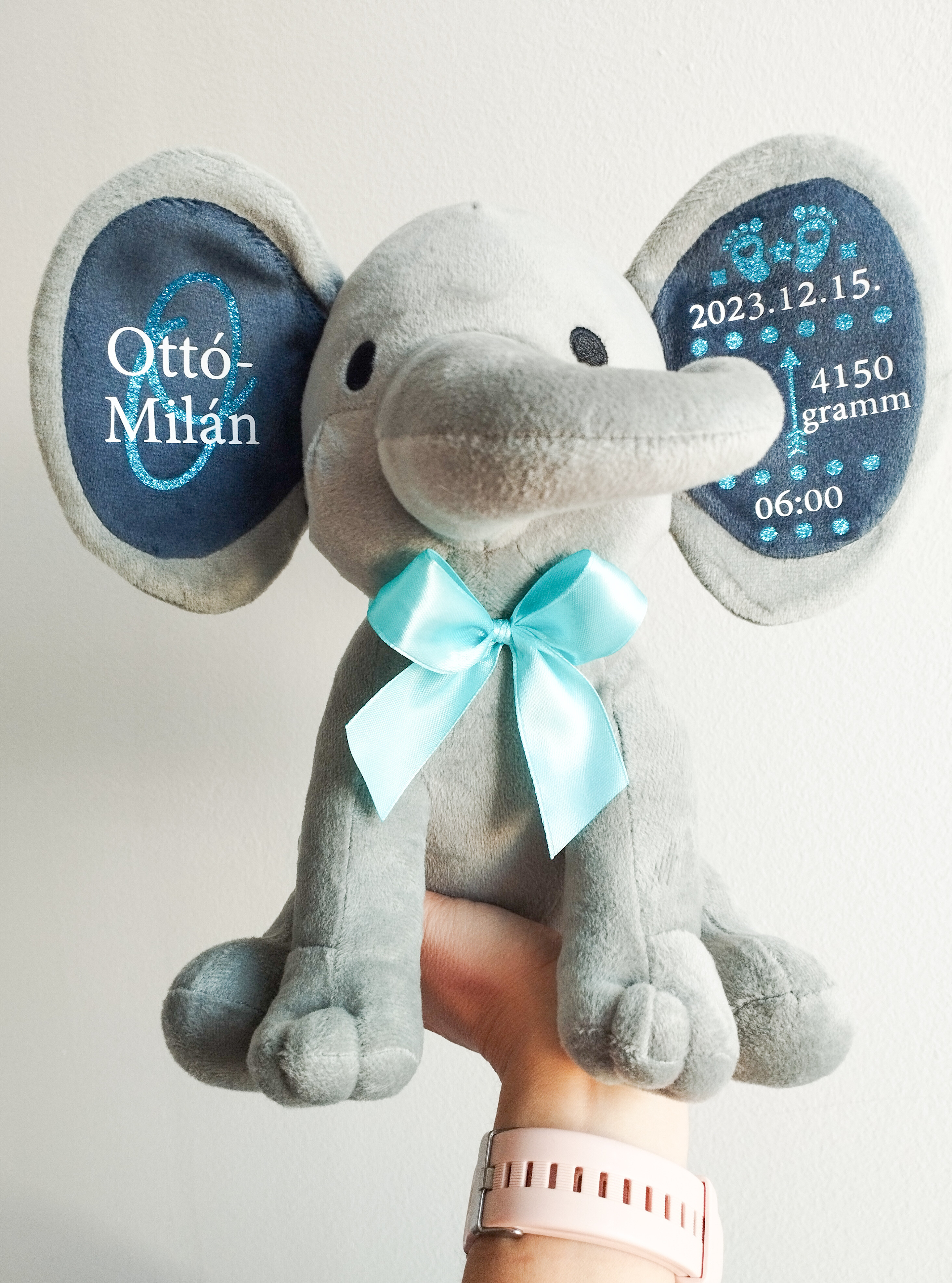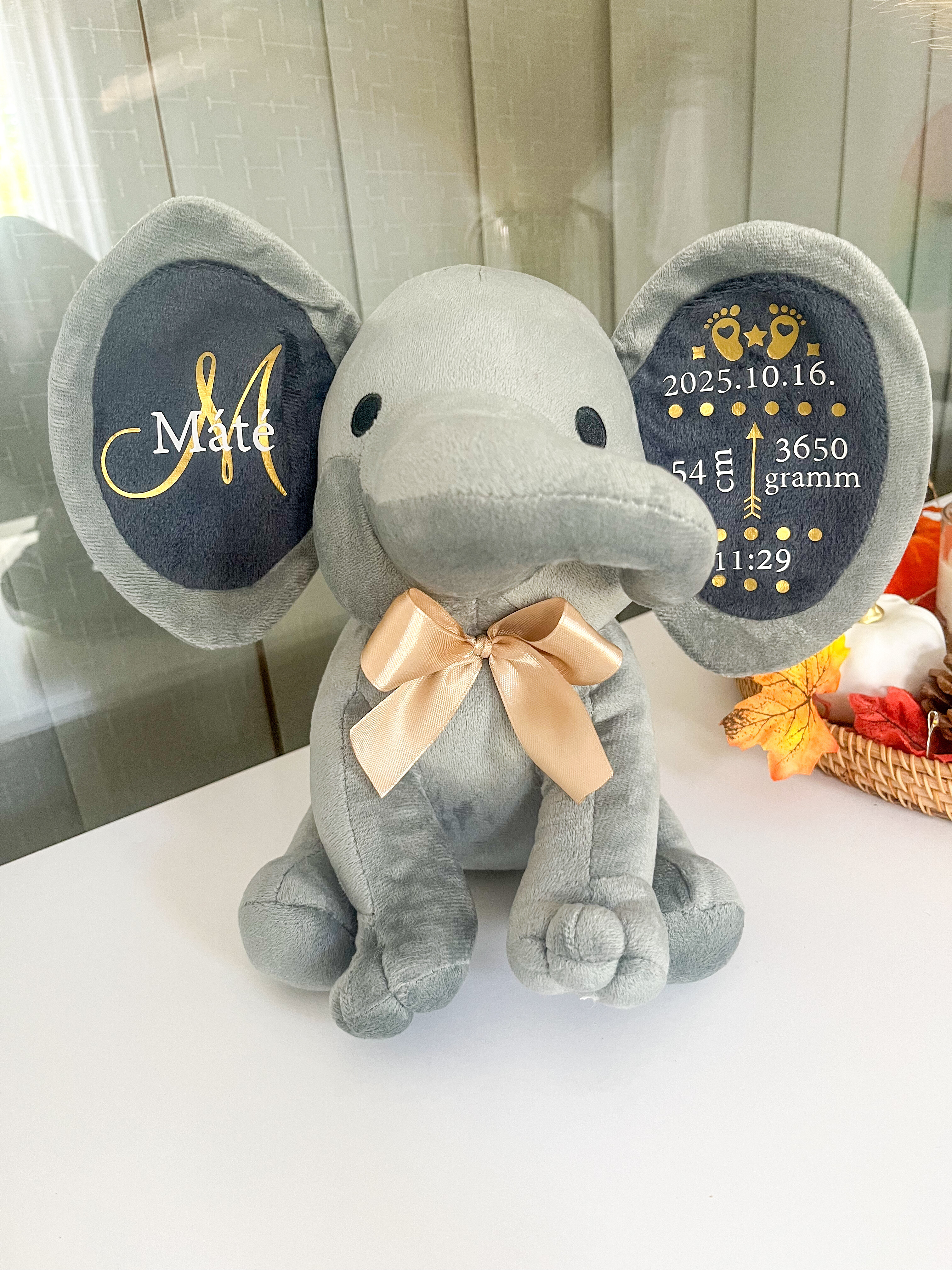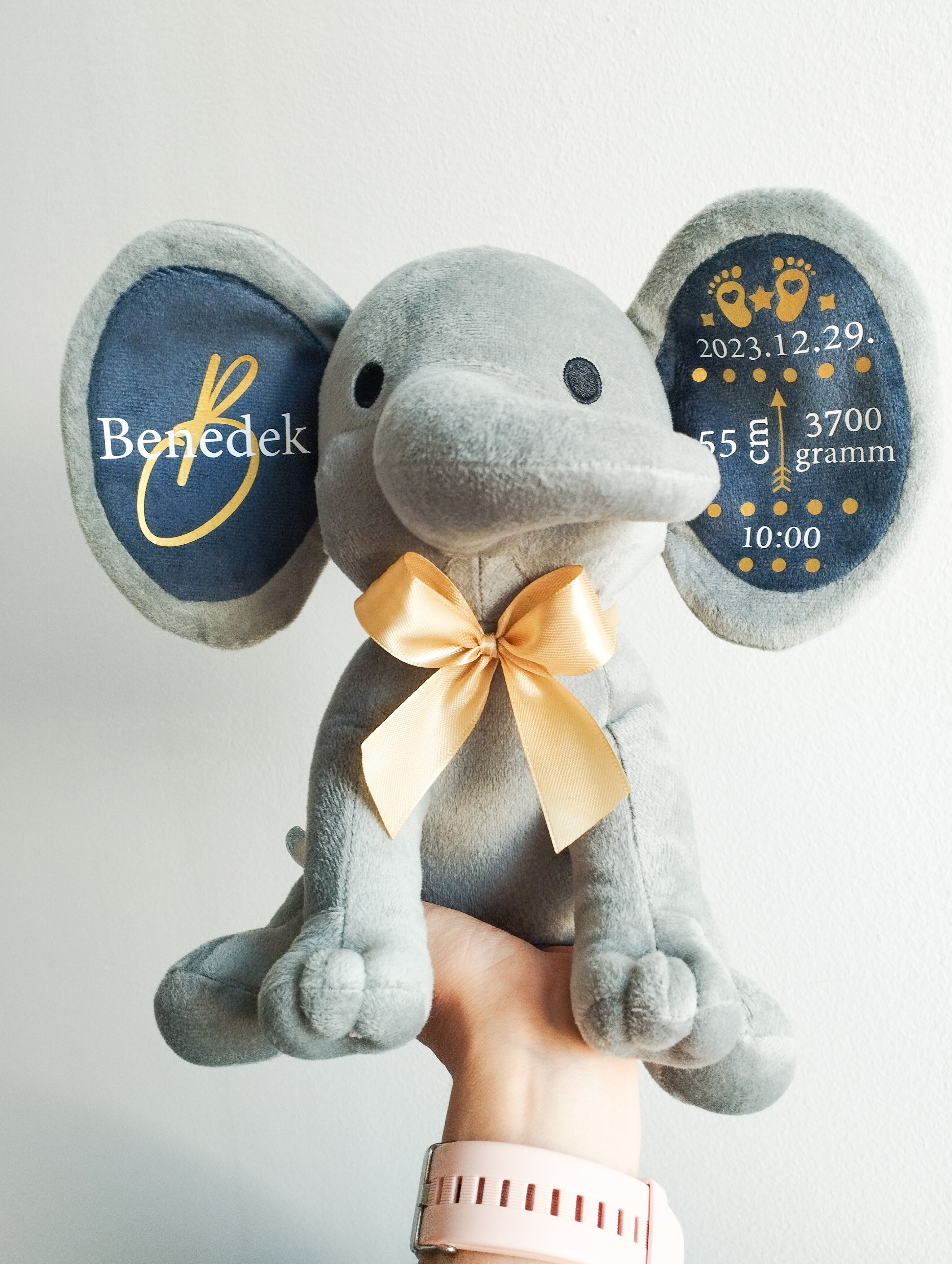 A puha, minőségi plüss elefánt személyre szabható feliratokkal készül, így igazán egyedi és megható ajándék babalátogatóba, keresztelőre vagy születésnapra.