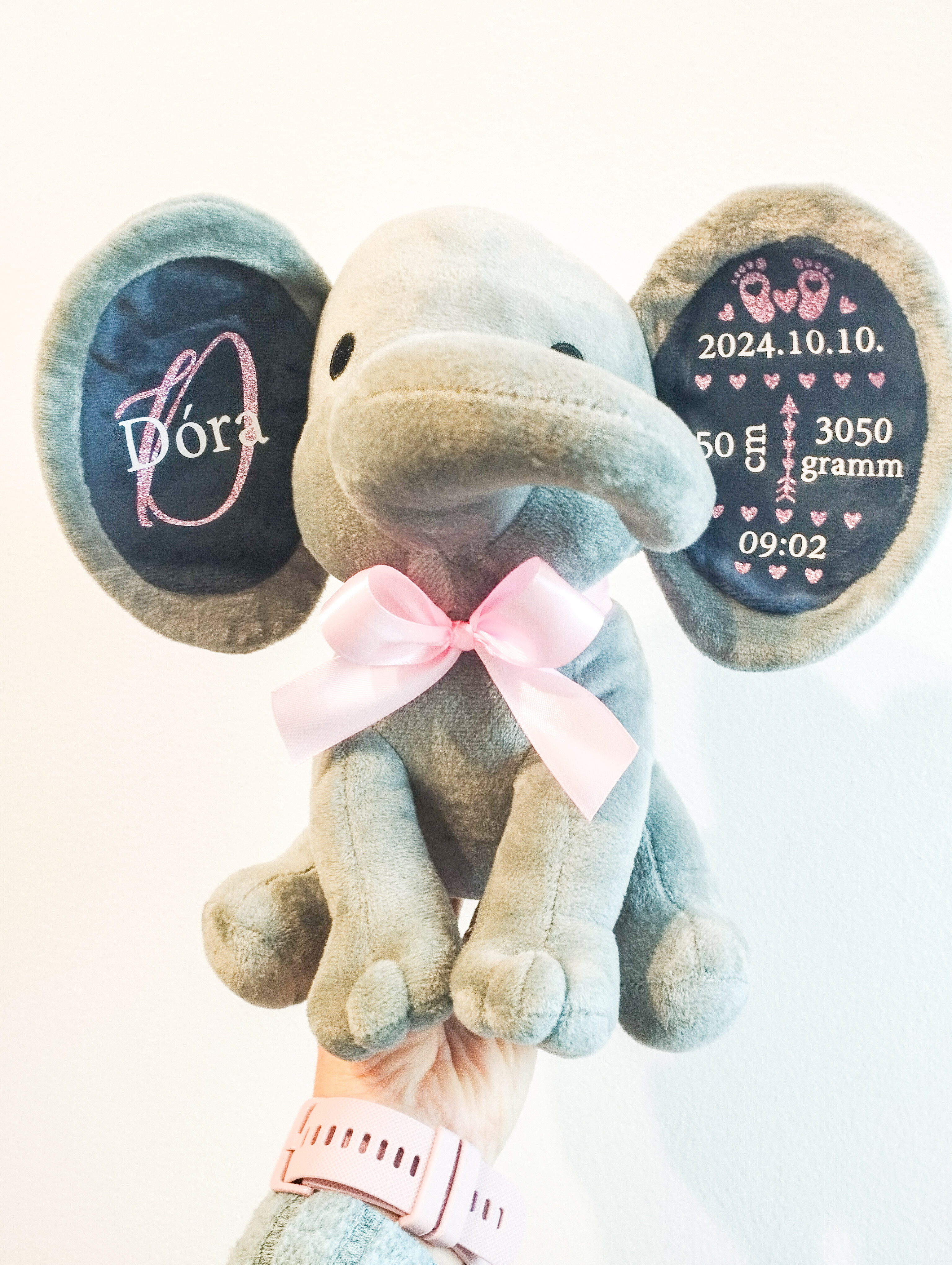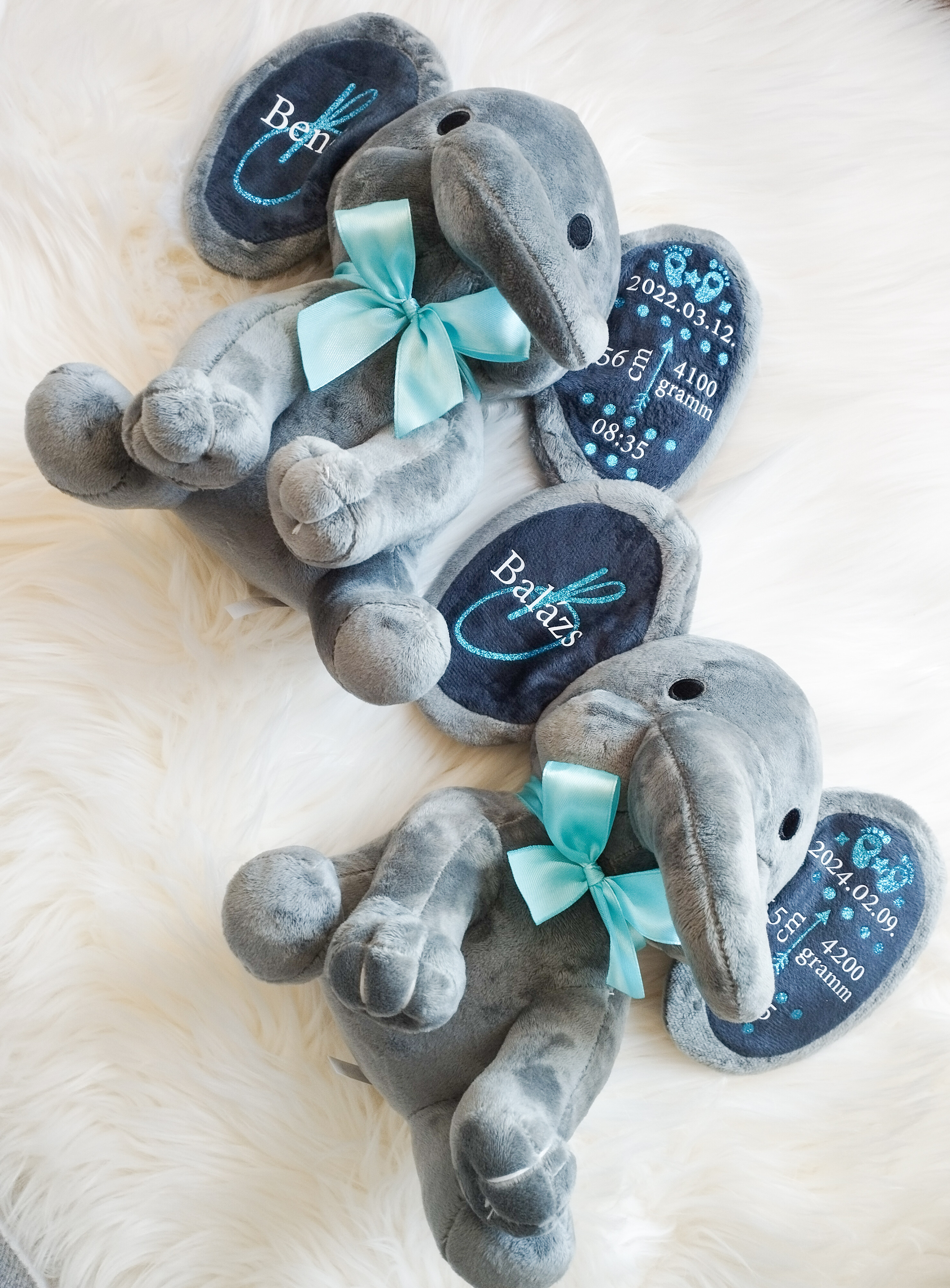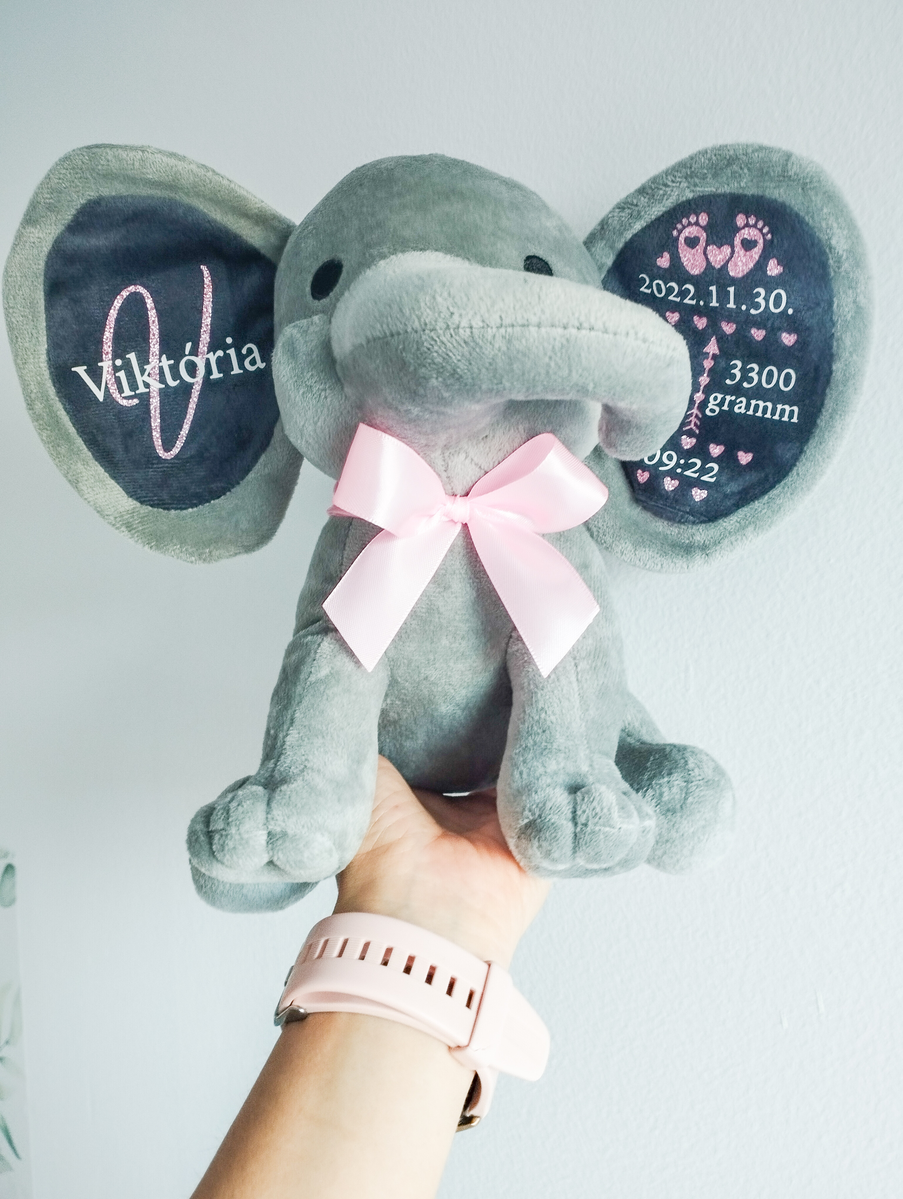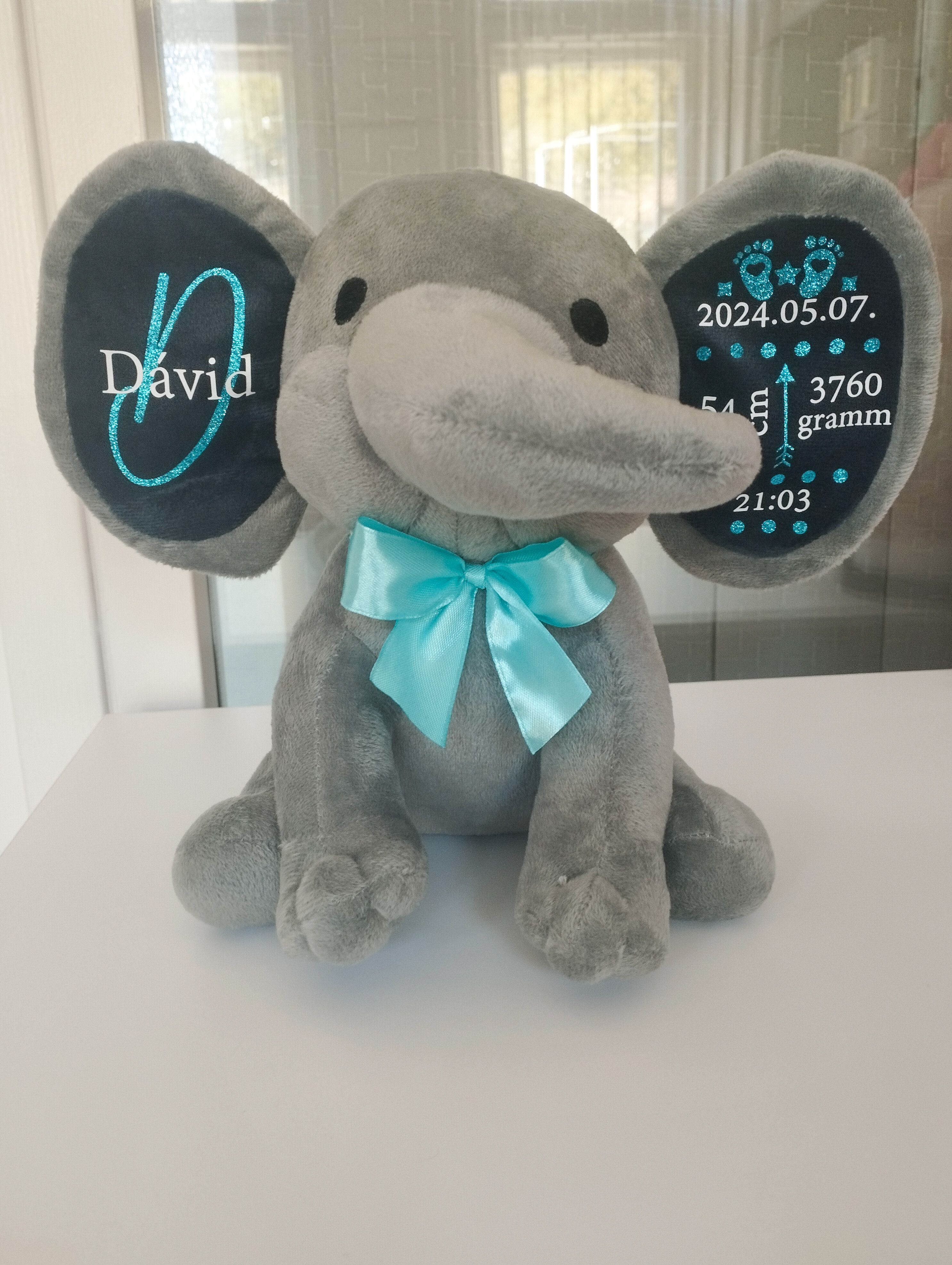 A puha, minőségi plüss elefánt személyre szabható feliratokkal készül, így igazán egyedi és megható ajándék babalátogatóba, keresztelőre vagy születésnapra.