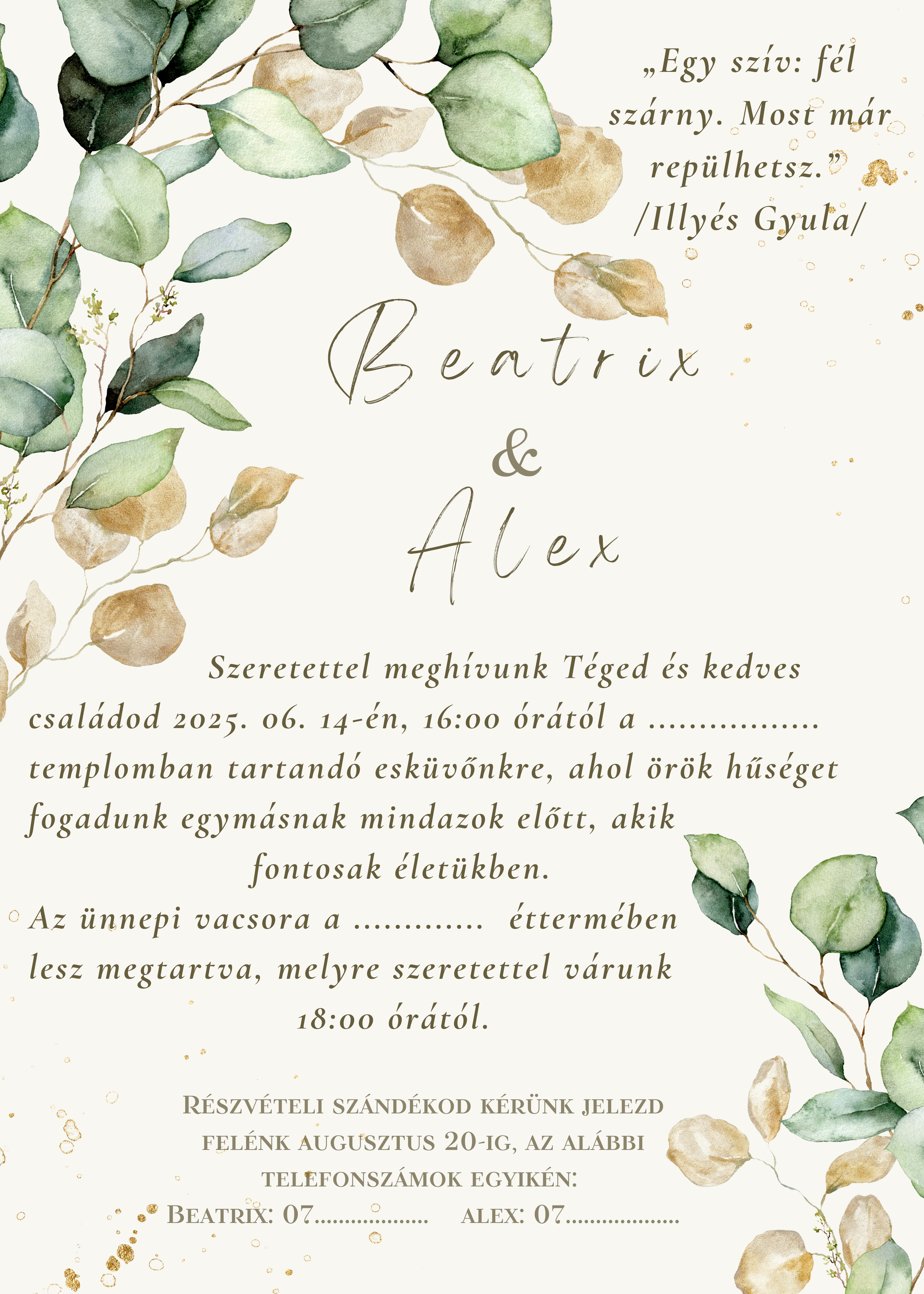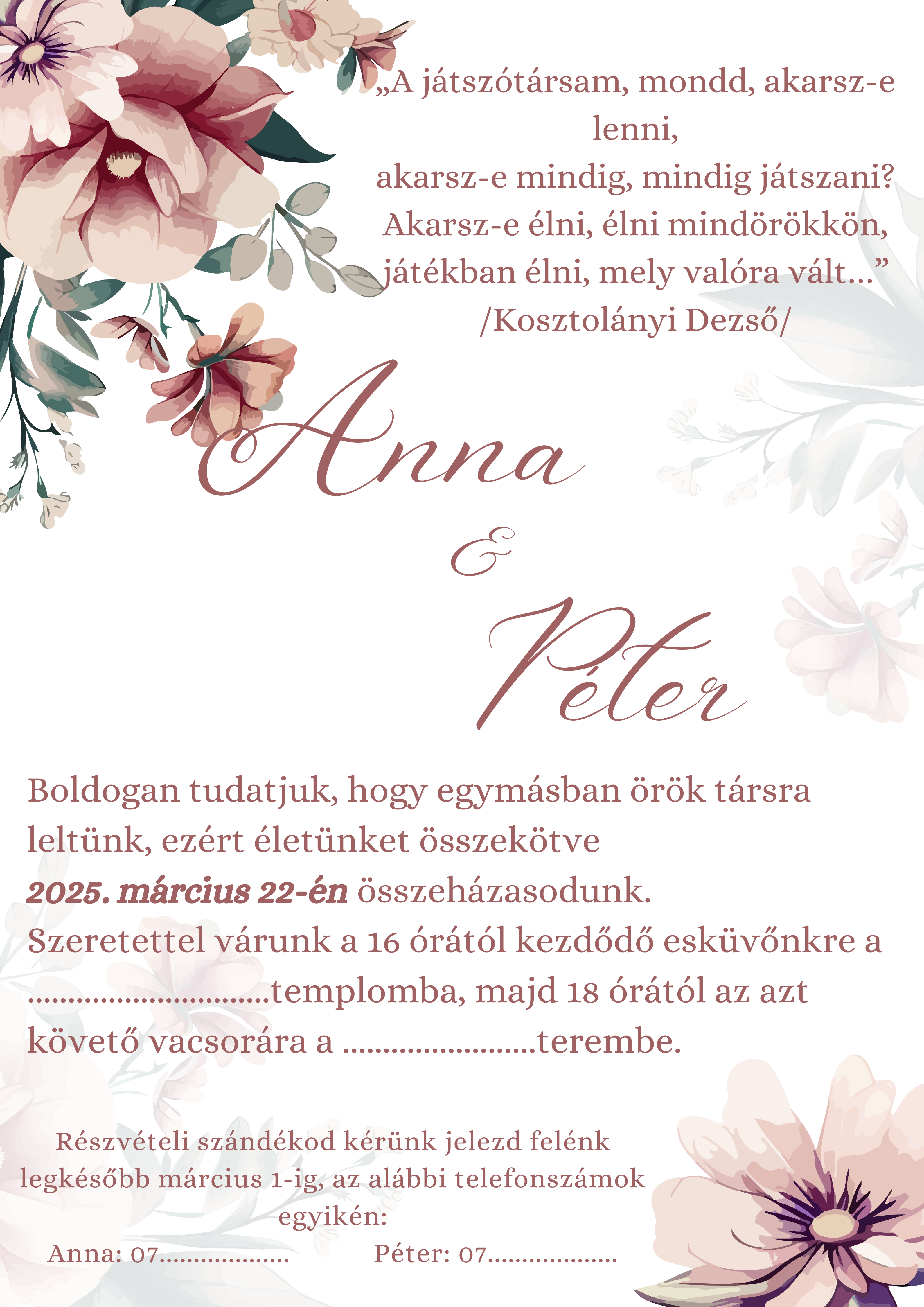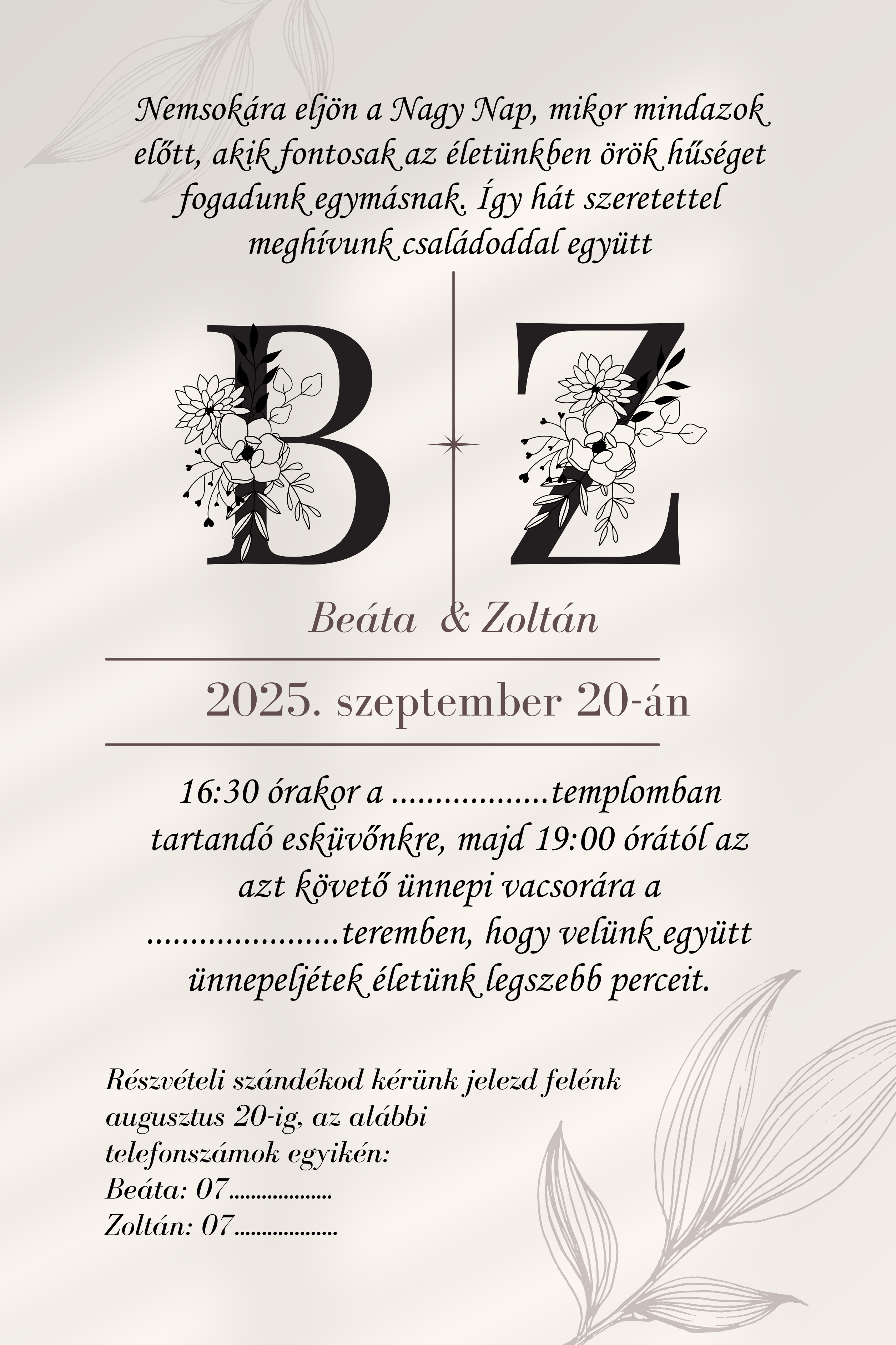 Az esküvői meghívó az első üzenet, amit a vendégeid a nagy napból megkapnak, az a kis előzetes varázslat, ami megidézi az esemény hangulatát, stílusát és a ti történetetek egyedi szépségét.