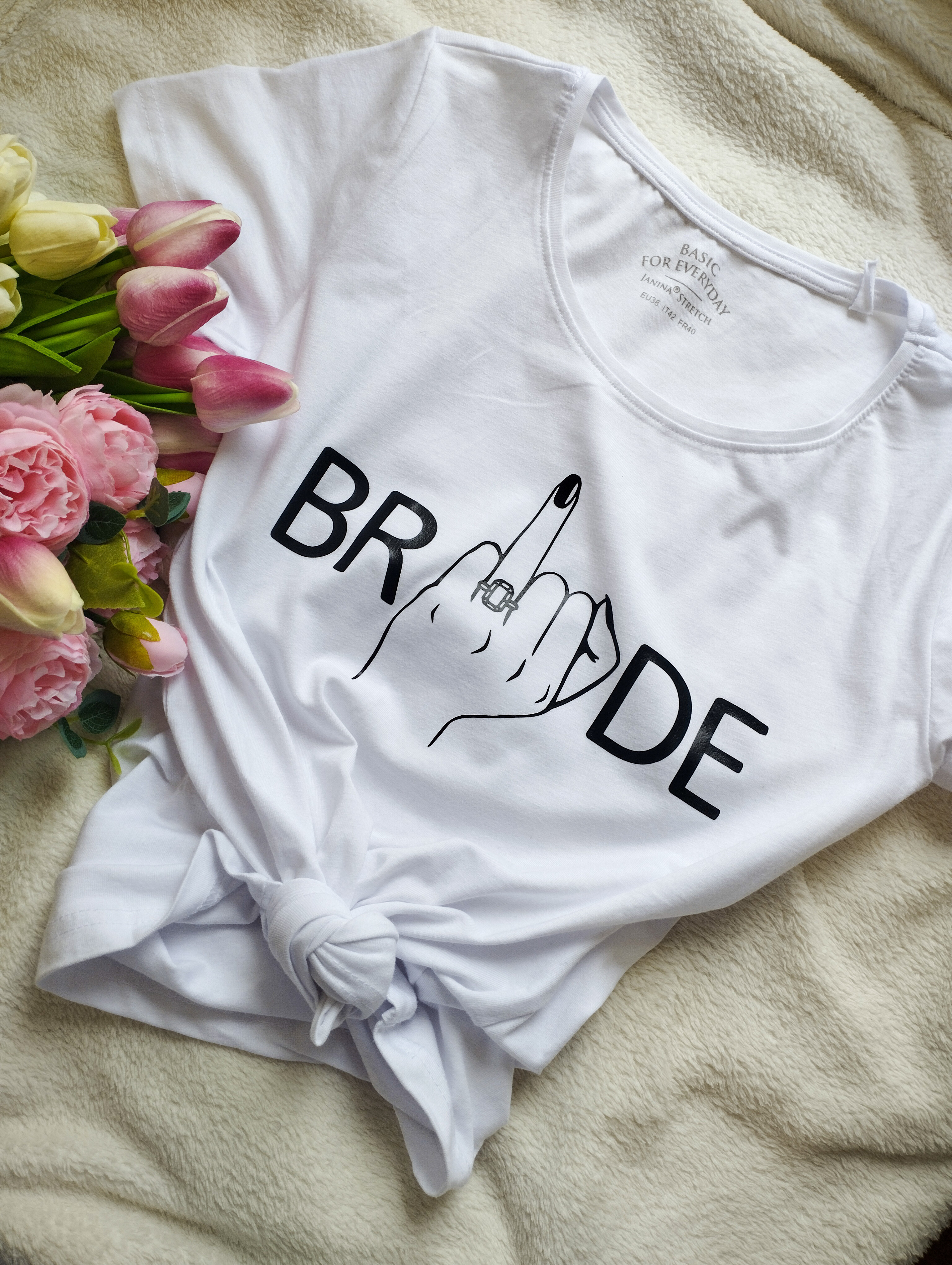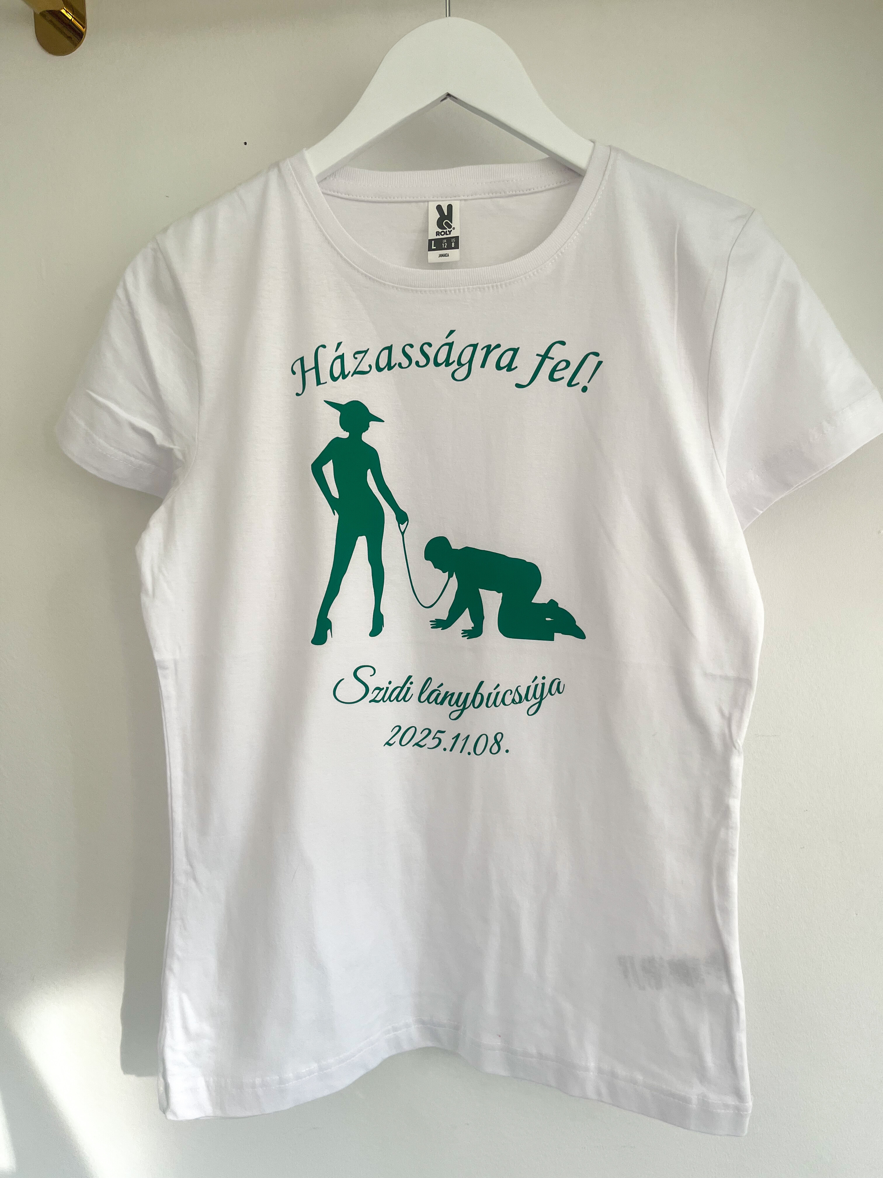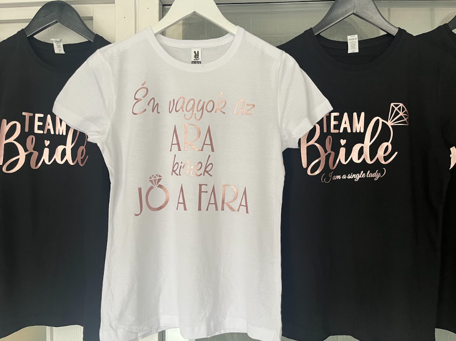 A kényelmes, pamut póló vidám hangulatot teremt a lánybúcsús bulin, akár a baráti csapat egyforma felszerelésként is viselhető.