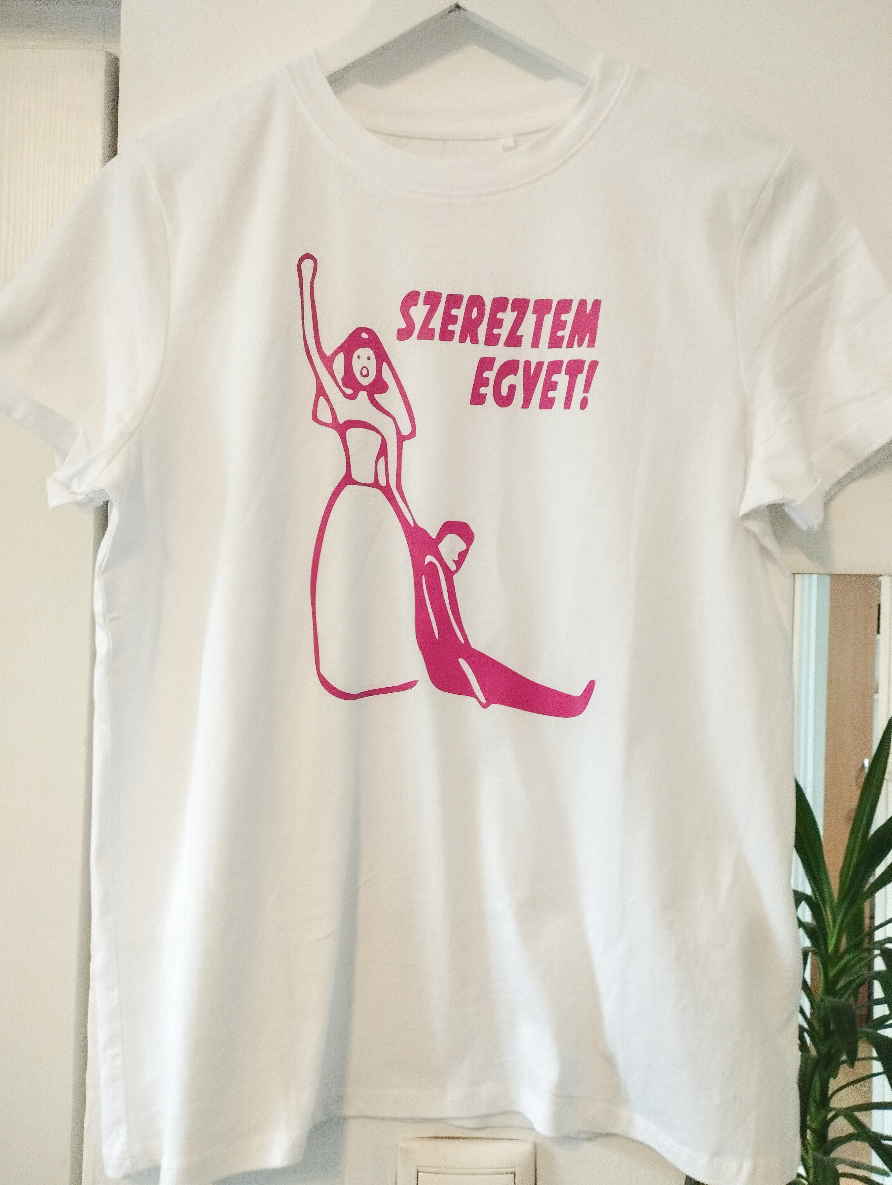 •Langyos hőfokon vasalható, de a feliratot közvetlenül ne vasald (ha szükséges mégis vasalni, akkor egy sütőpapírral takard le és úgy vasald a feliratot, de csak rövid ideig érje hő)