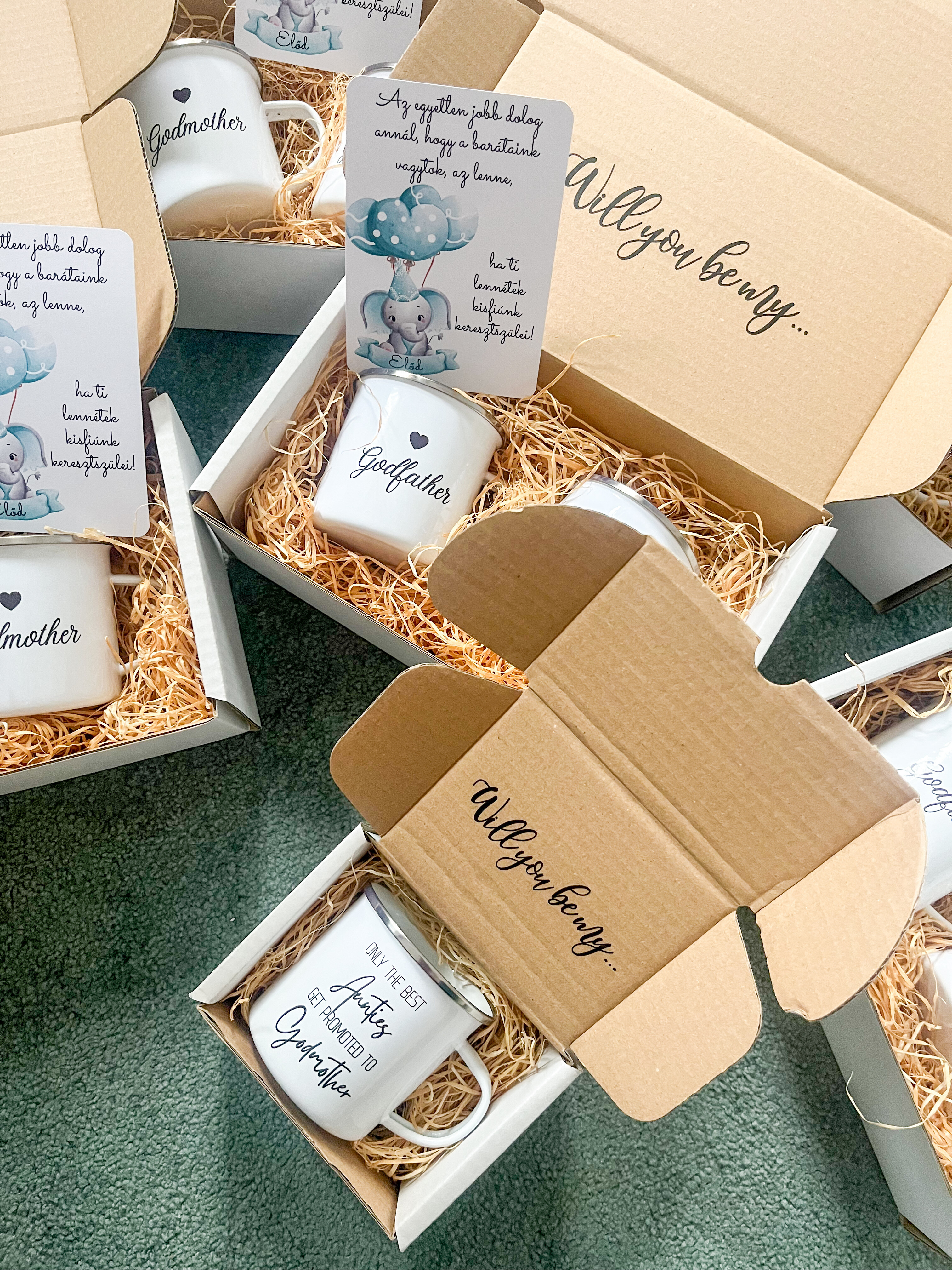 Minimalista, személyre szabott, cuki, mégis vagány. Egy bögre, ami garantáltan elolvasztja a keresztszülők szívét.