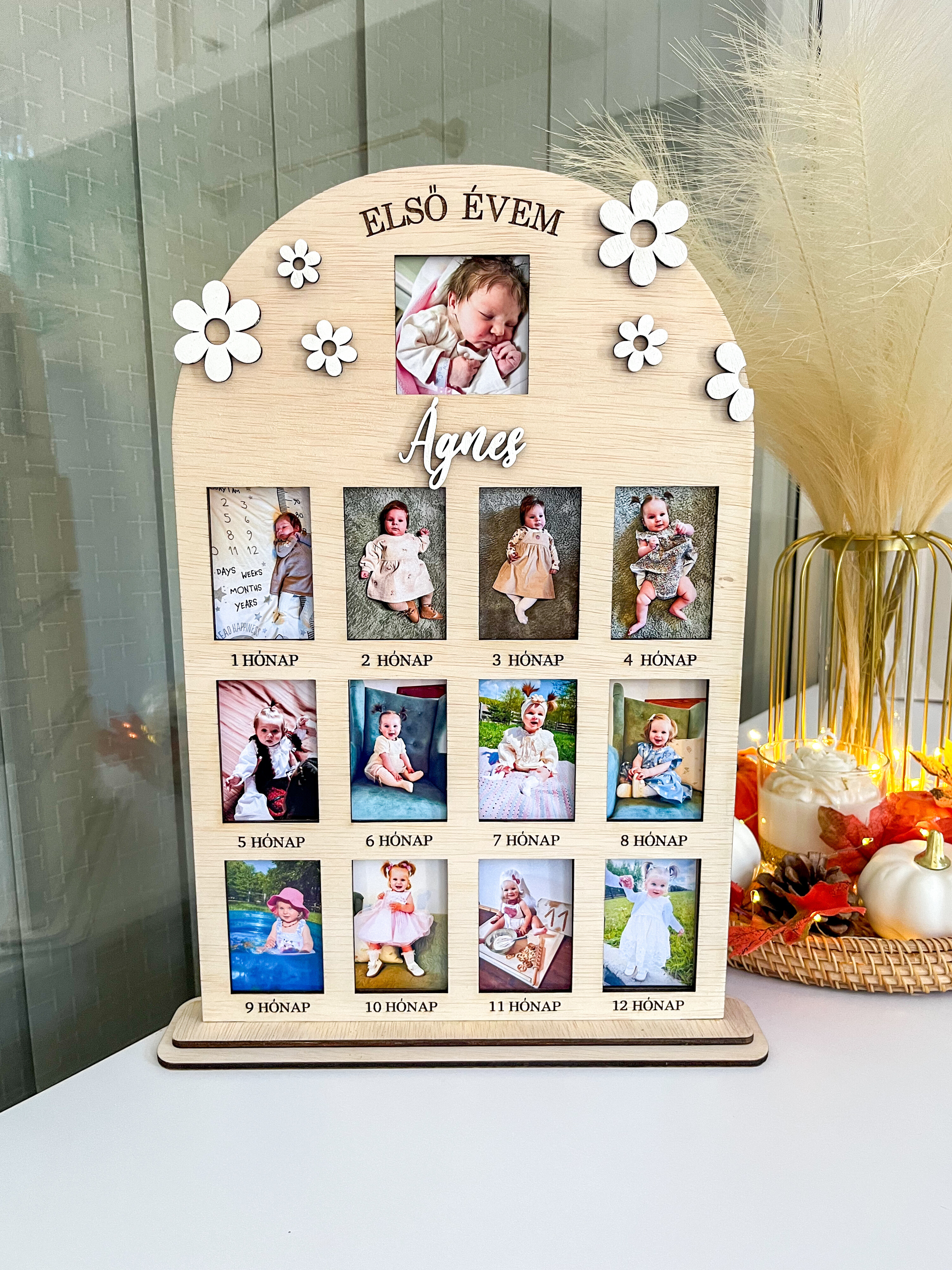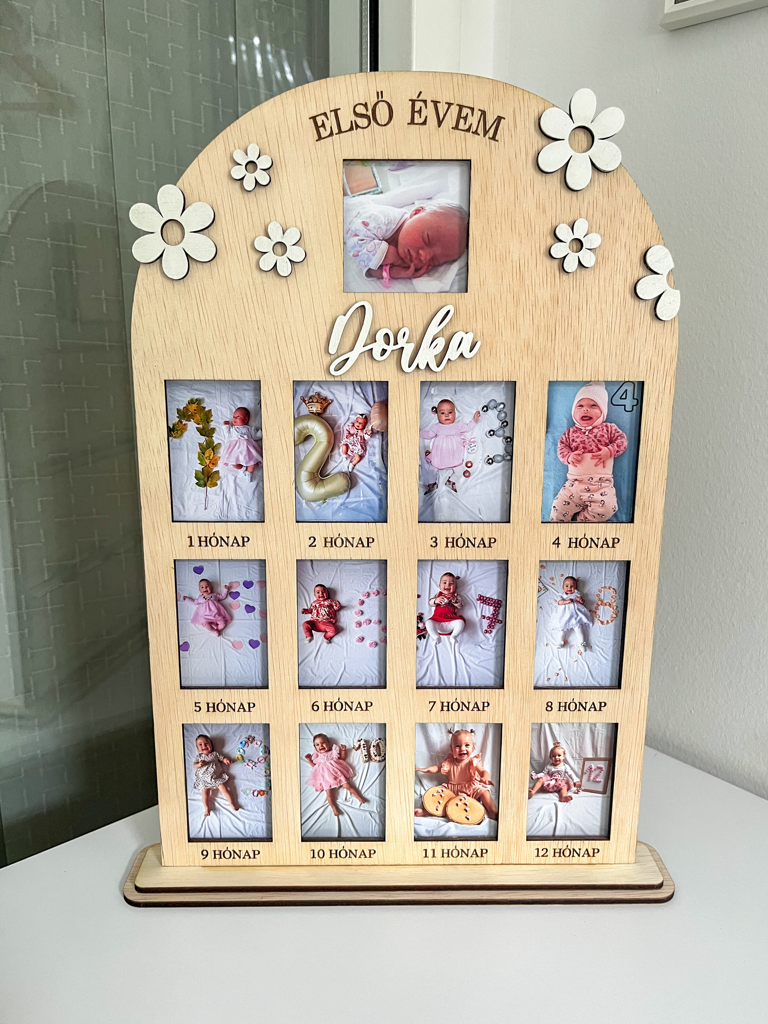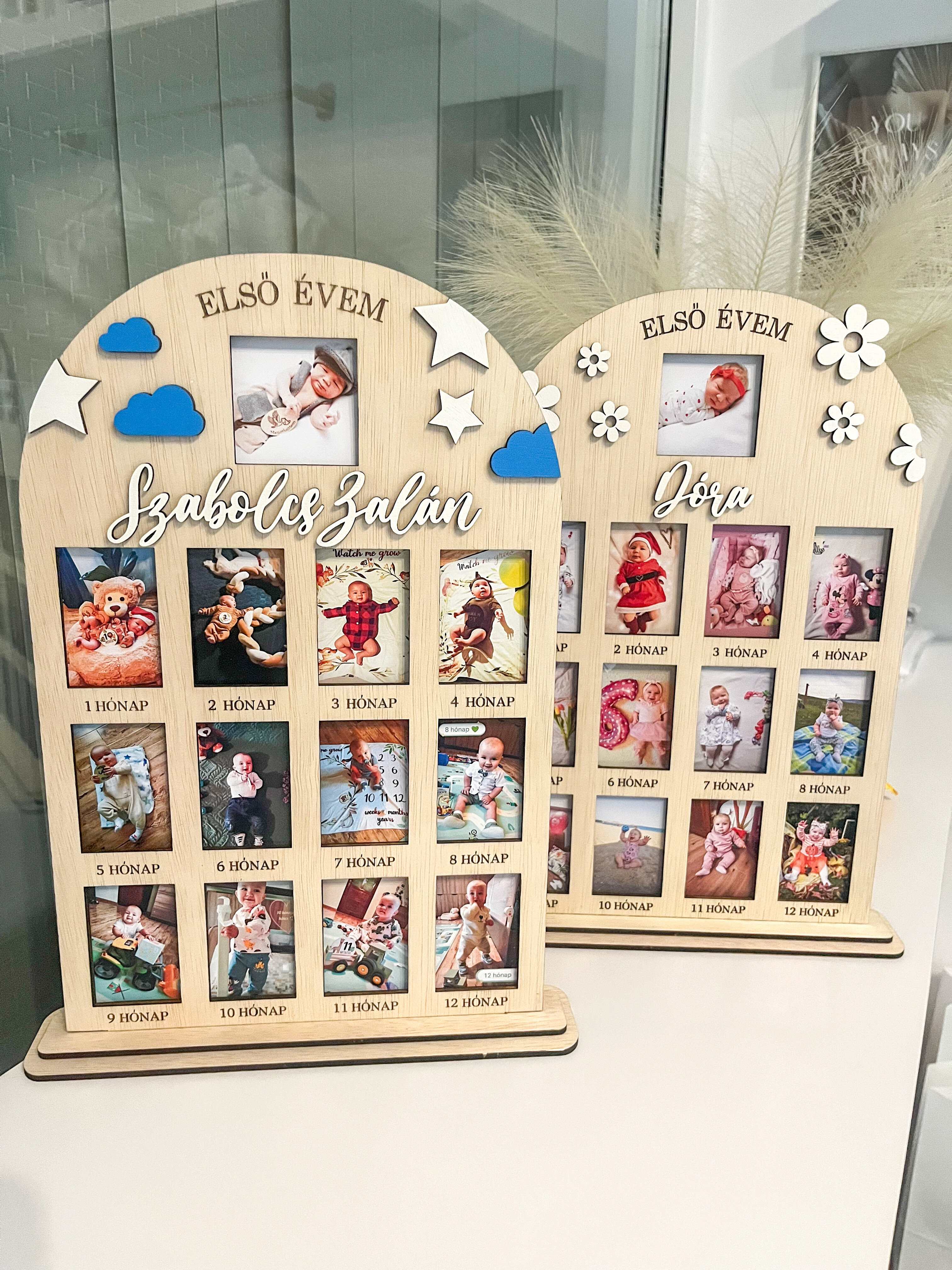 -Elhelyezhető képek: 12 db (1–12 hónap) + 1 db a baba első fotójának