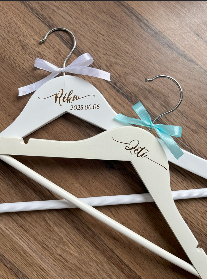 A kicsik sem maradhatnak ki a nagy nap különlegességeiből! A gravírozott gyerek vállfák tökéletes kiegészítői a keresztelőknek, esküvőknek vagy bármilyen jeles alkalomnak. Egyedi feliratukkal nemcsak praktikusak, hanem gyönyörű emlékként is megmaradnak a család számára.
