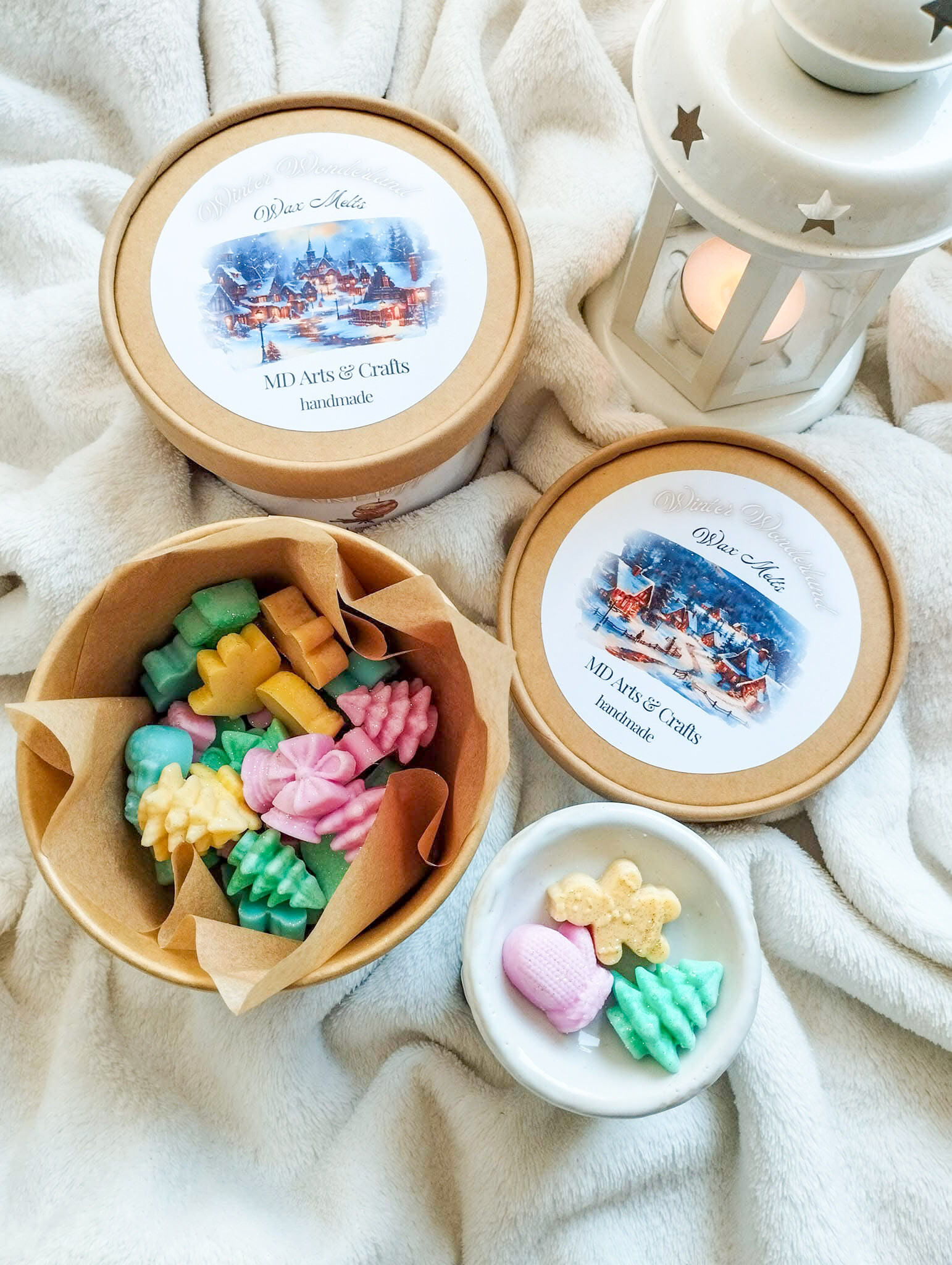 A gondosan összeválogatott, kézzel öntött viaszformák mintha egy mesebeli téli faluból érkeztek volna.