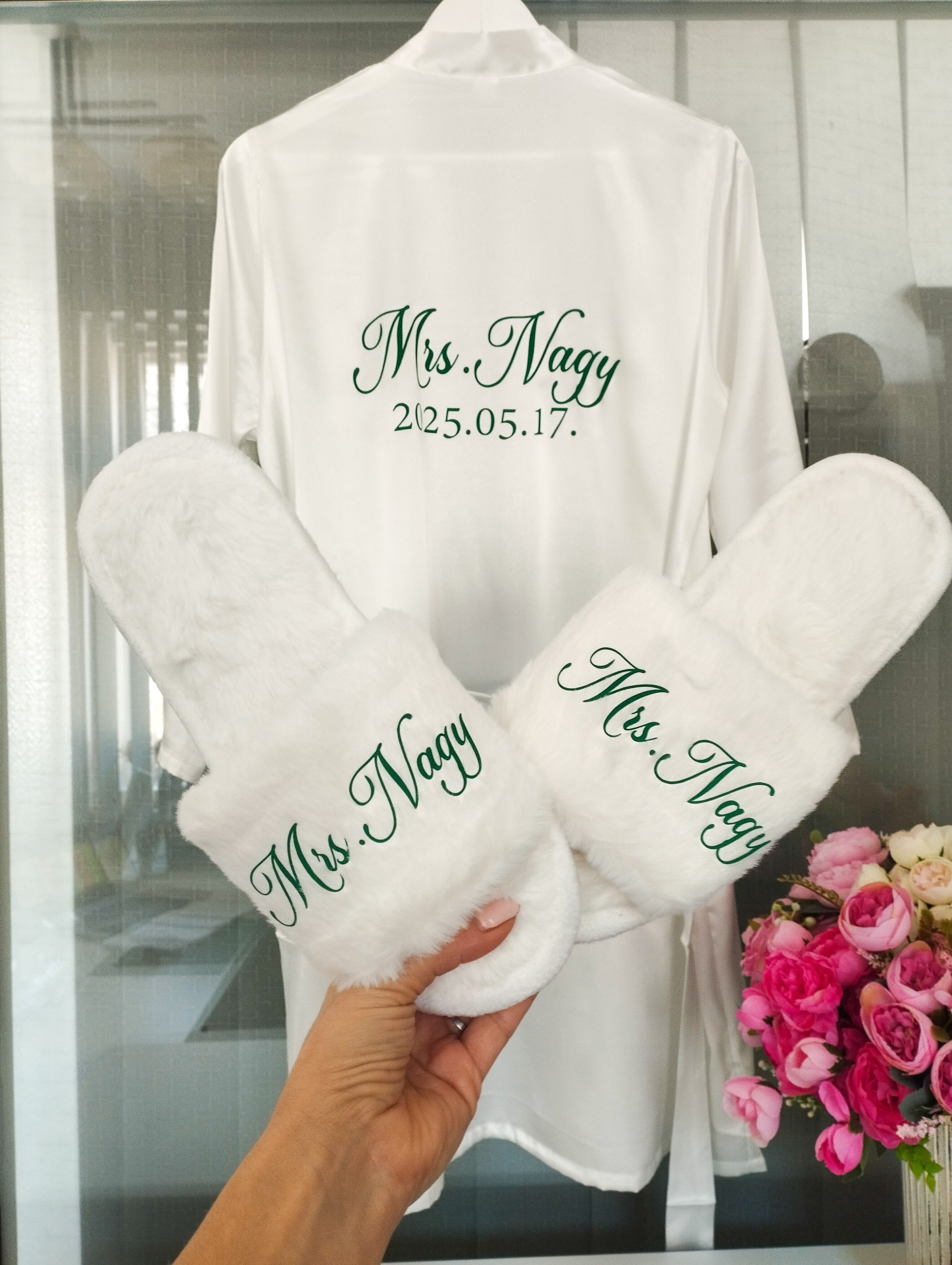 Kérheted névre szólóan, felirattal (pl. Bride, Menyasszony, keresztnév, Team Bride, Koszorúslány), így tökéletesen illeszkedik az esküvő hangulatához. Ha rendeltél köntöst is, akkor kérheted ugyanazzal a stílussal, mint a köntös feliratot (ezt jelezd a megjegyzésben).