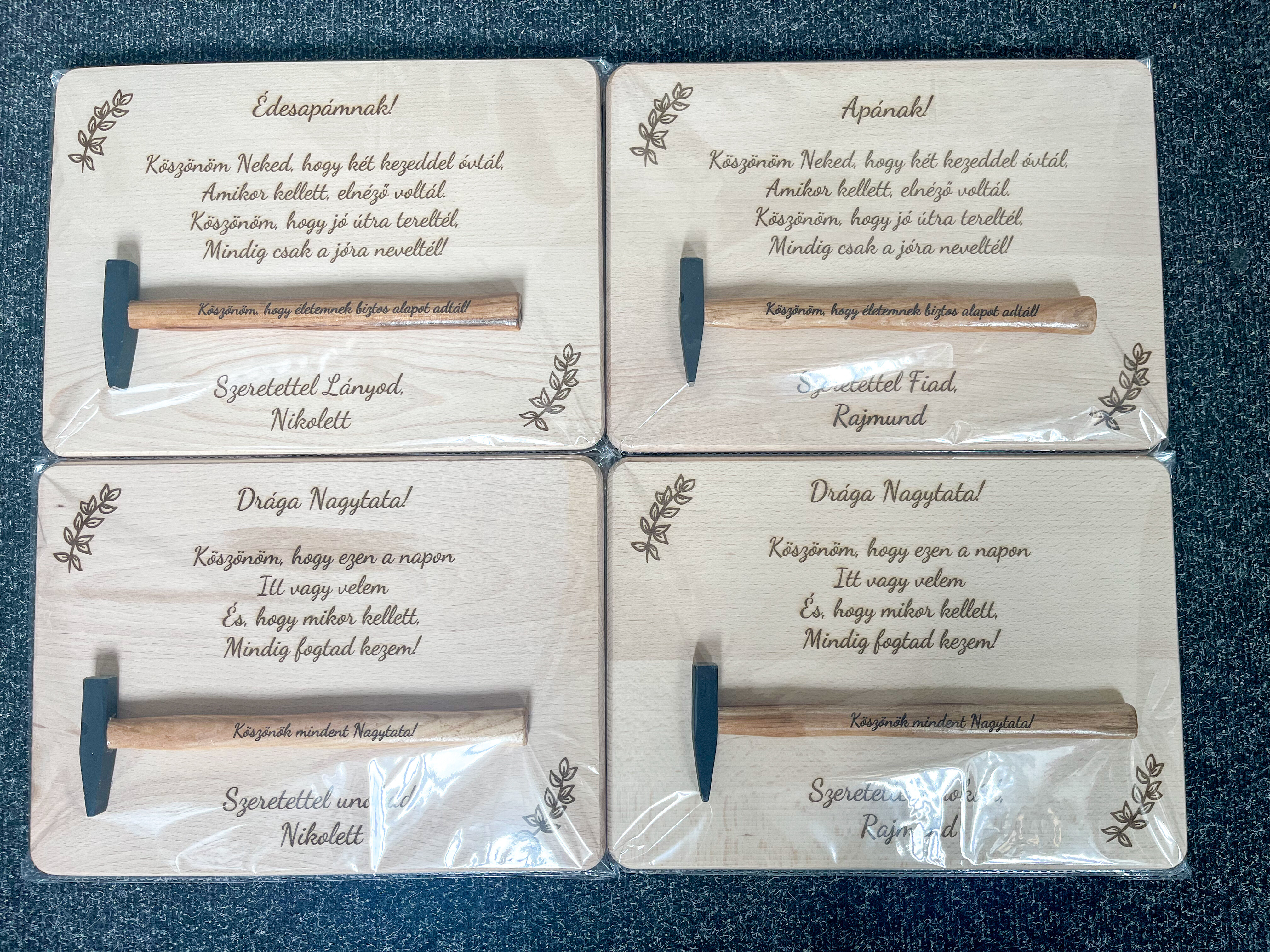 Ez a különleges, gravírozott tábla egyszerre szívhez szóló és egyedi ajándék. Tökéletes választás szülő-, nagyszülő köszöntésre.