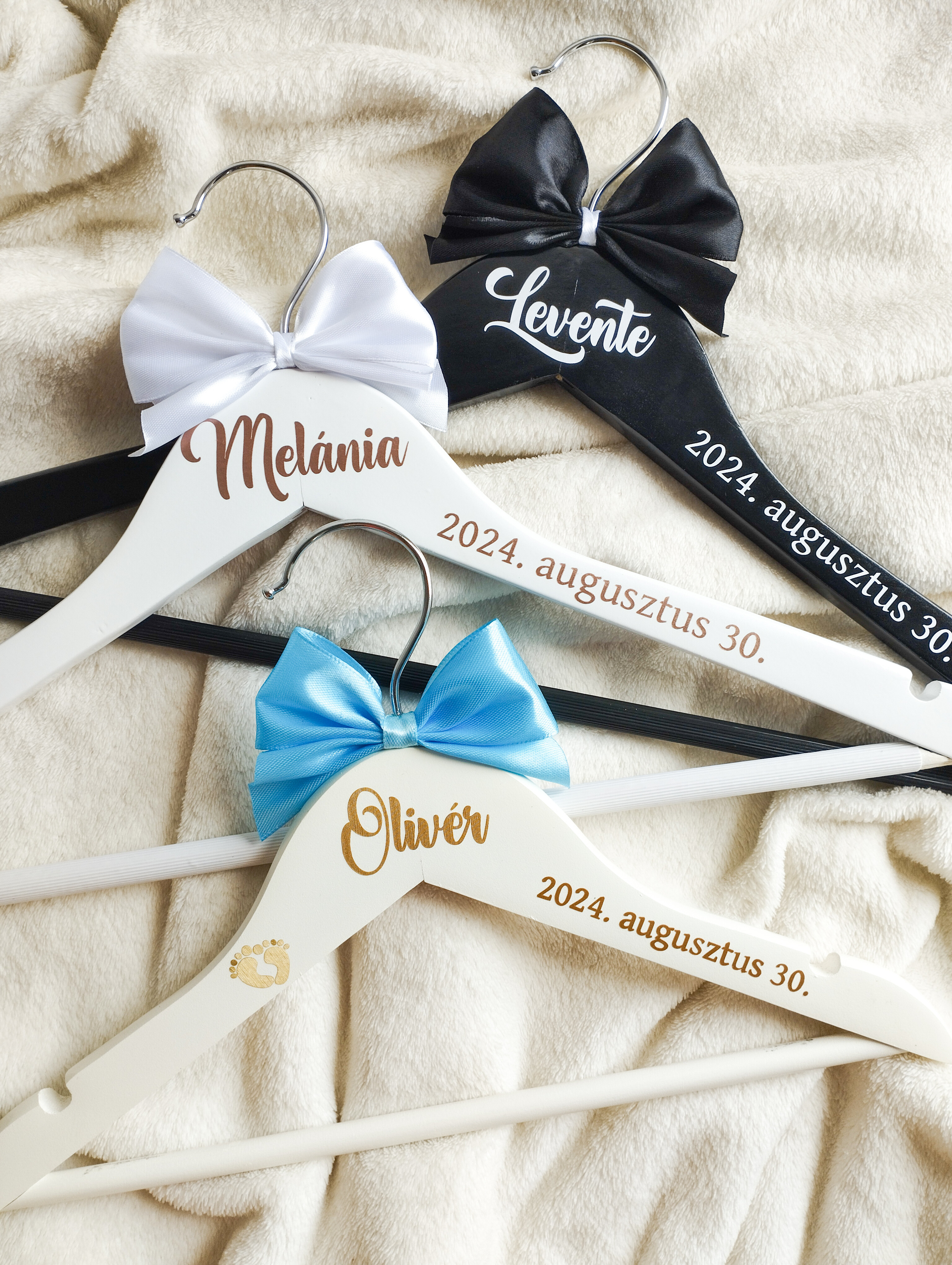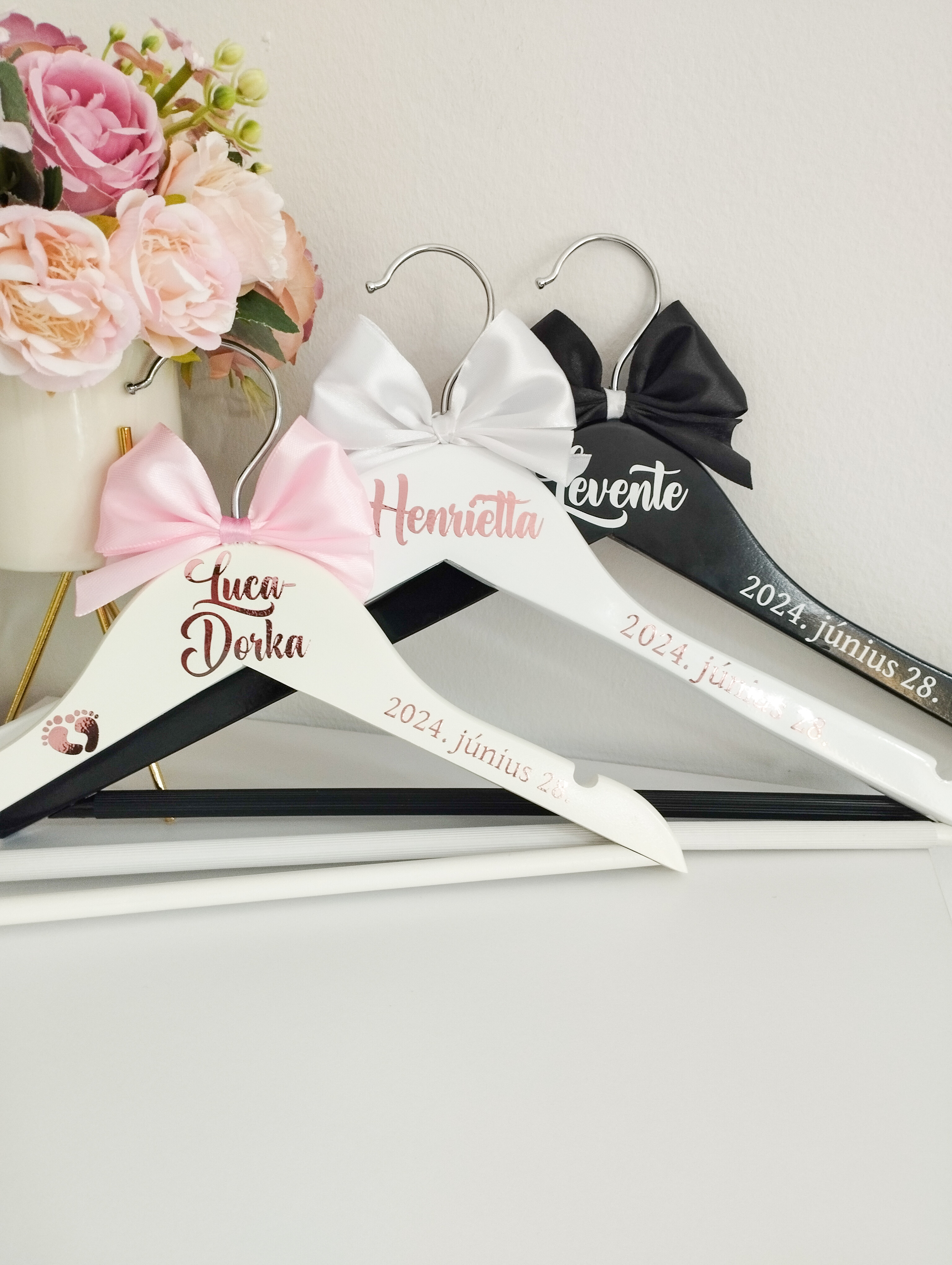 A kicsik sem maradhatnak ki a nagy nap különlegességeiből! A gyerek vállfák tökéletes kiegészítői a keresztelőknek, esküvőknek vagy bármilyen jeles alkalomnak. Egyedi feliratukkal nemcsak praktikusak, hanem gyönyörű emlékként is megmaradnak a család számára.