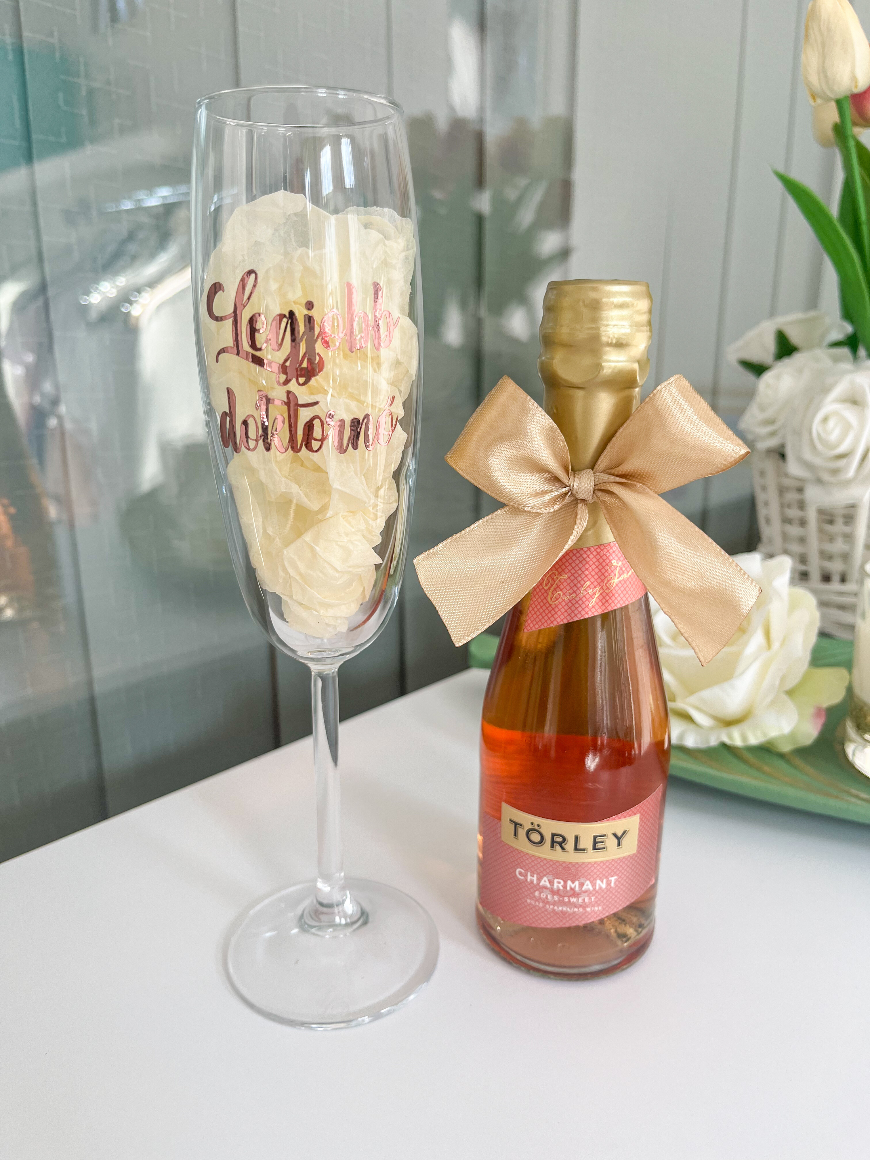 Ha egyedi ajándékkal lepnél meg egy számodra kedves hölgyet, akkor a megszemélyesített pezsgős pohár és mini pezsgő tökéletes választás lehet bármilyen alkalomra.