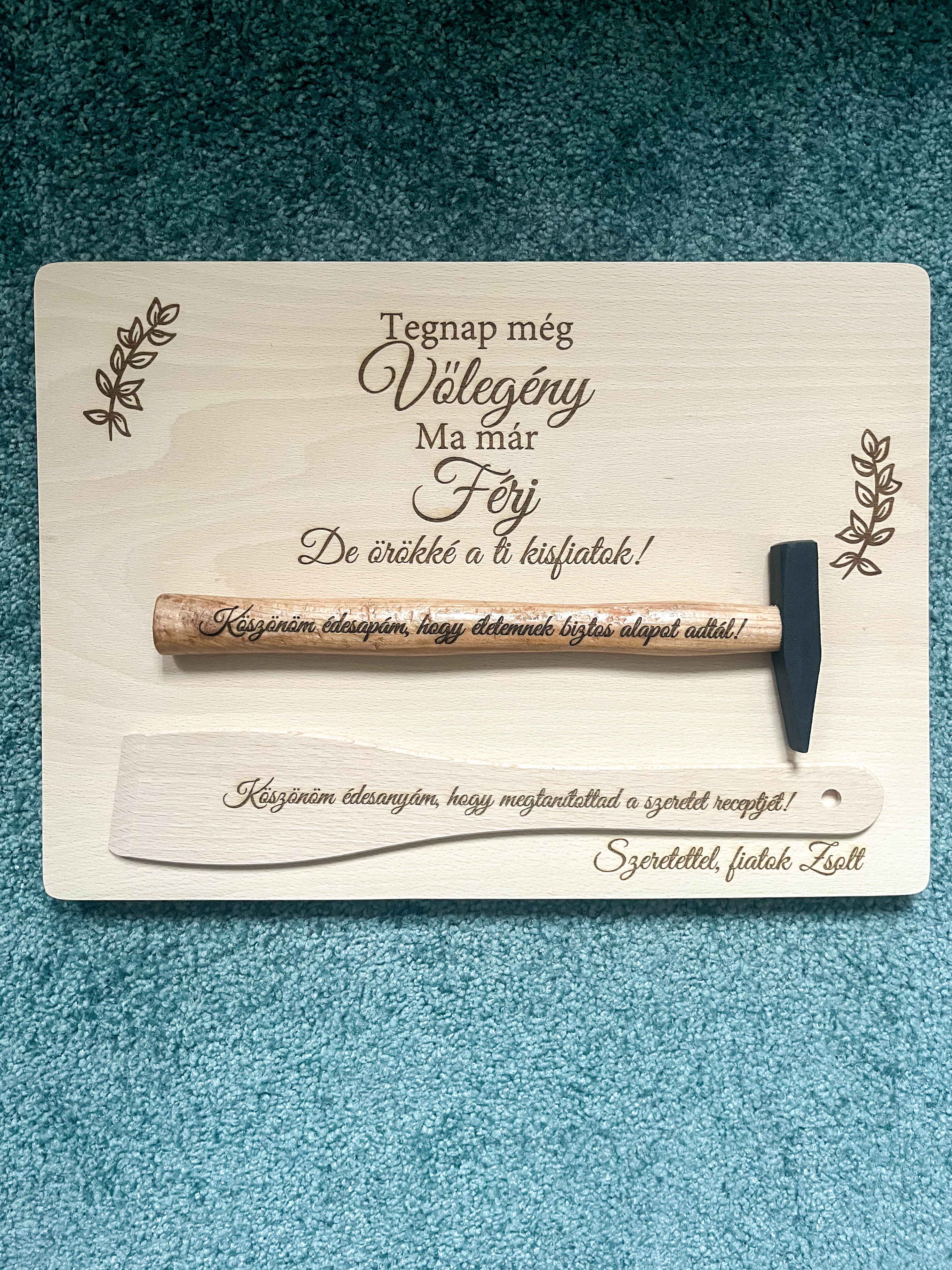 Ez a különleges, gravírozott tábla egyszerre szívhez szóló és egyedi ajándék. Tökéletes választás szülőköszöntésre.