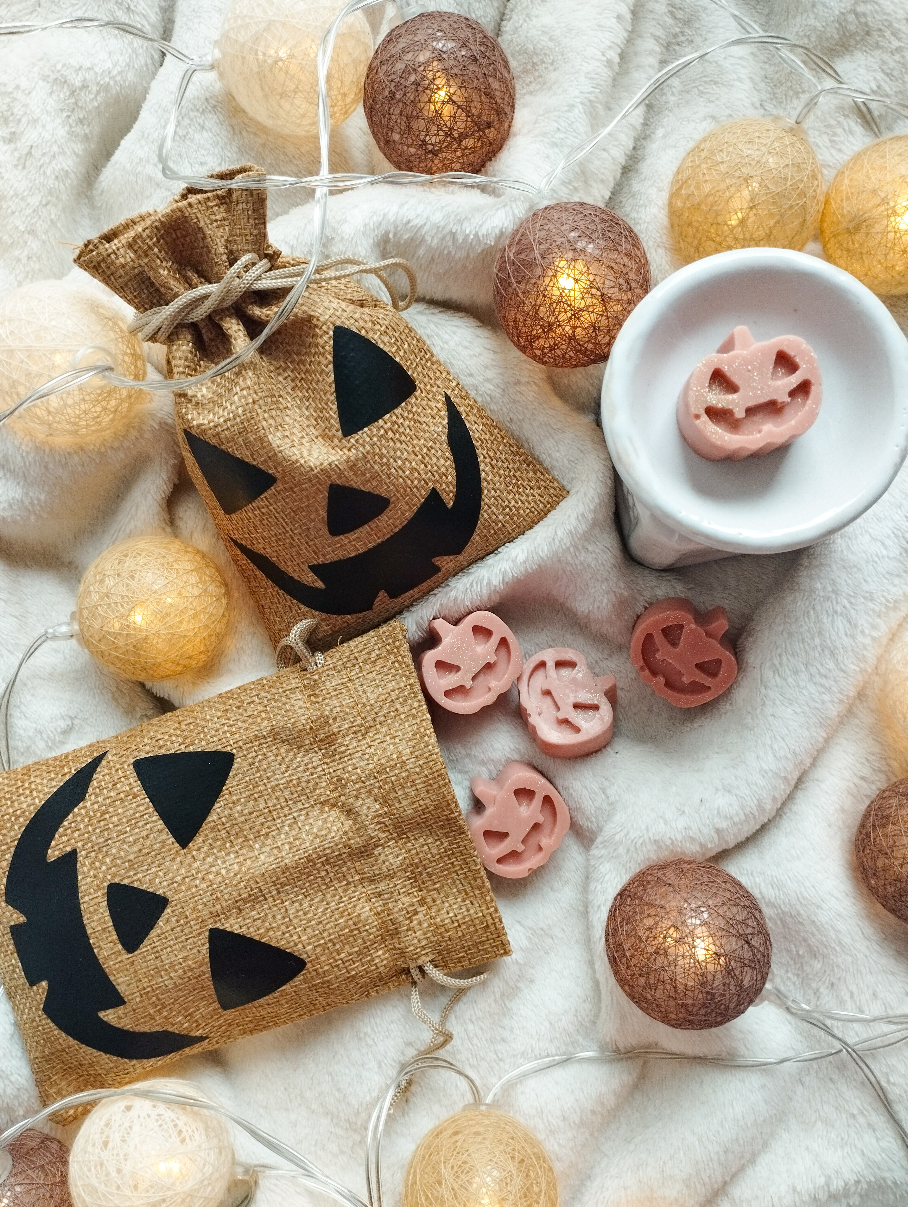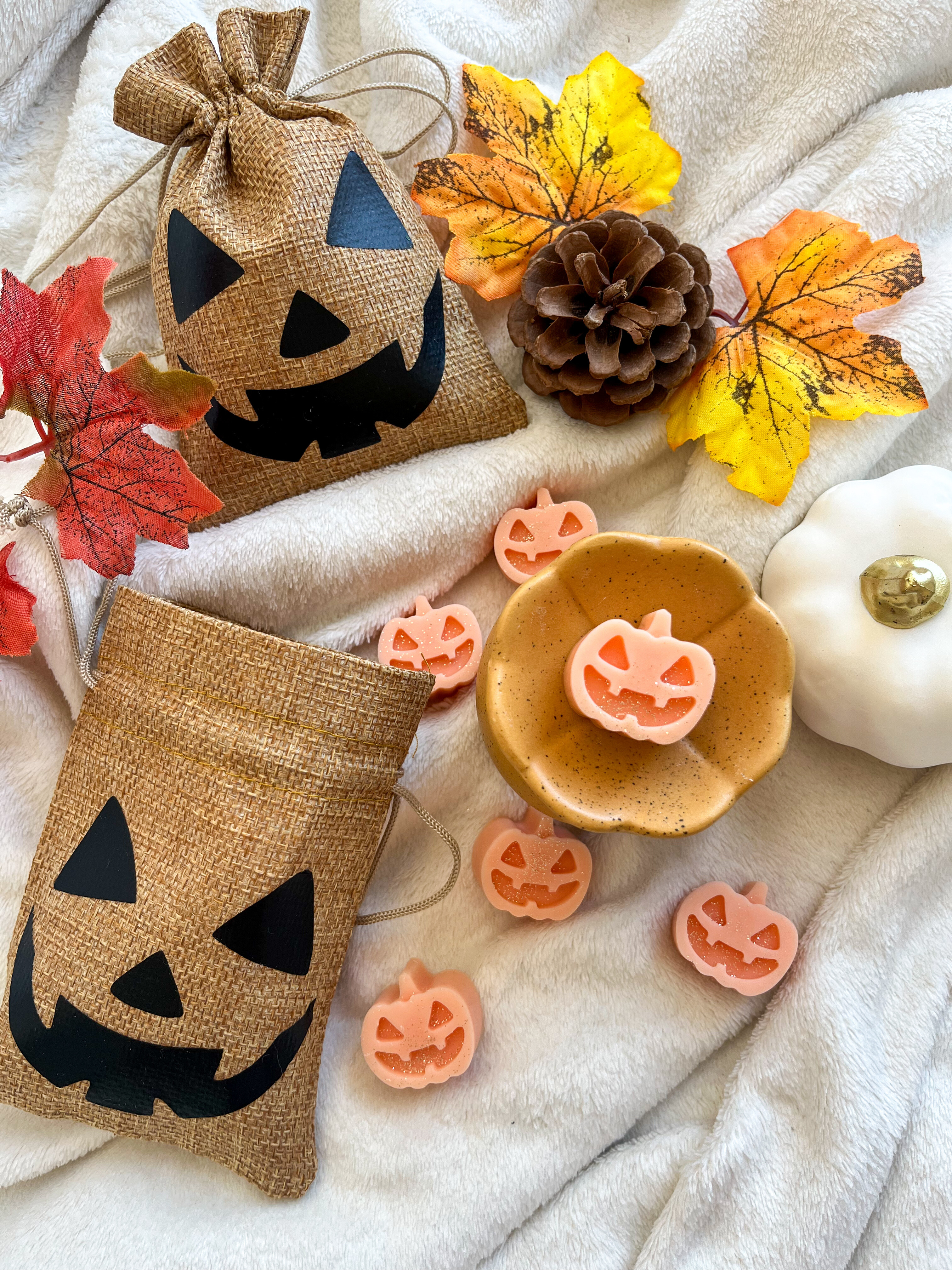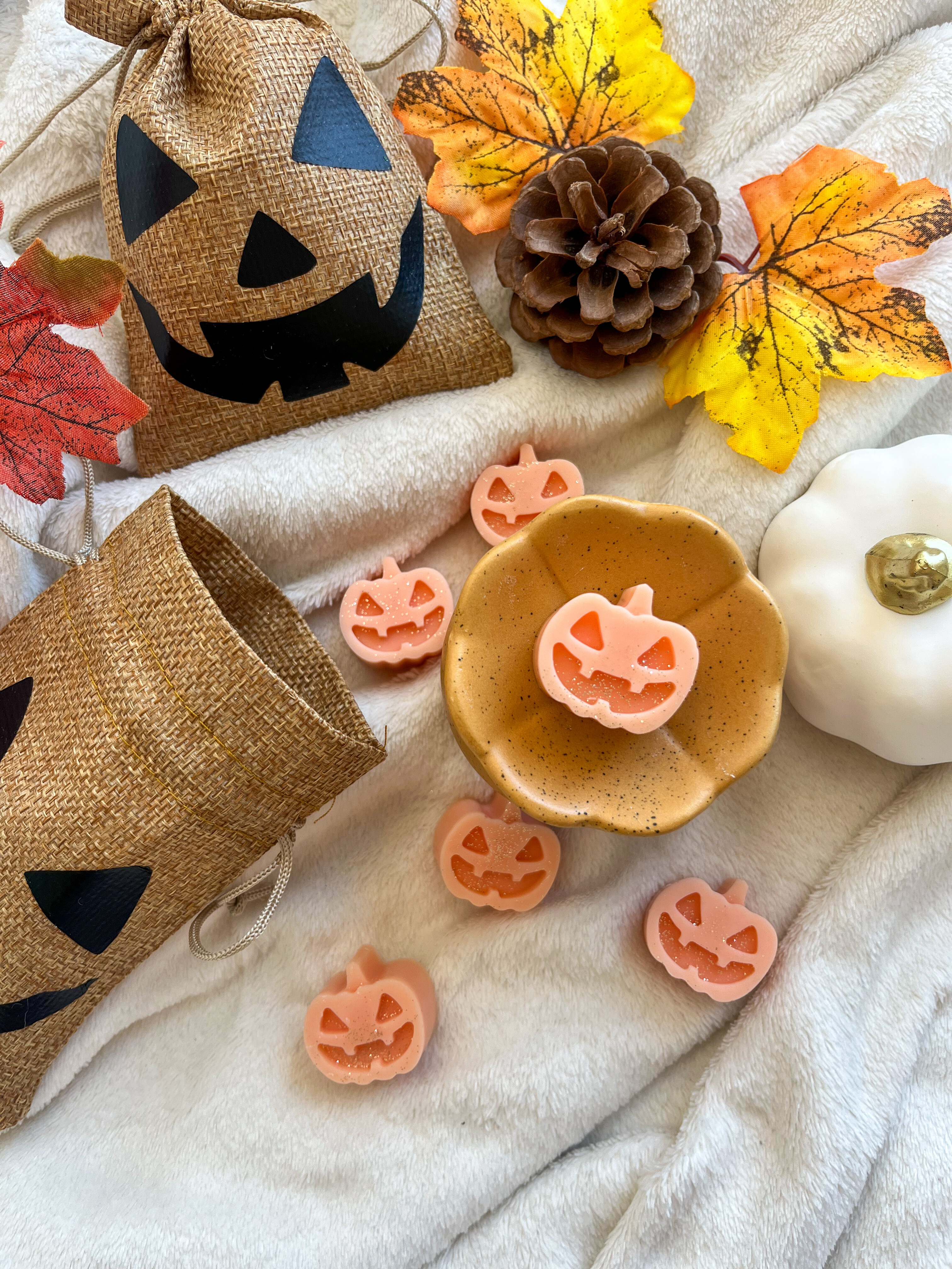 A csomag tele van apró, mosolygós töklámpás illatviaszokkal, amelyek: varázslatos illattal töltik meg a lakást, olvadás közben felerősítik a "bekuckózós-halloweenes" vibe-ot.