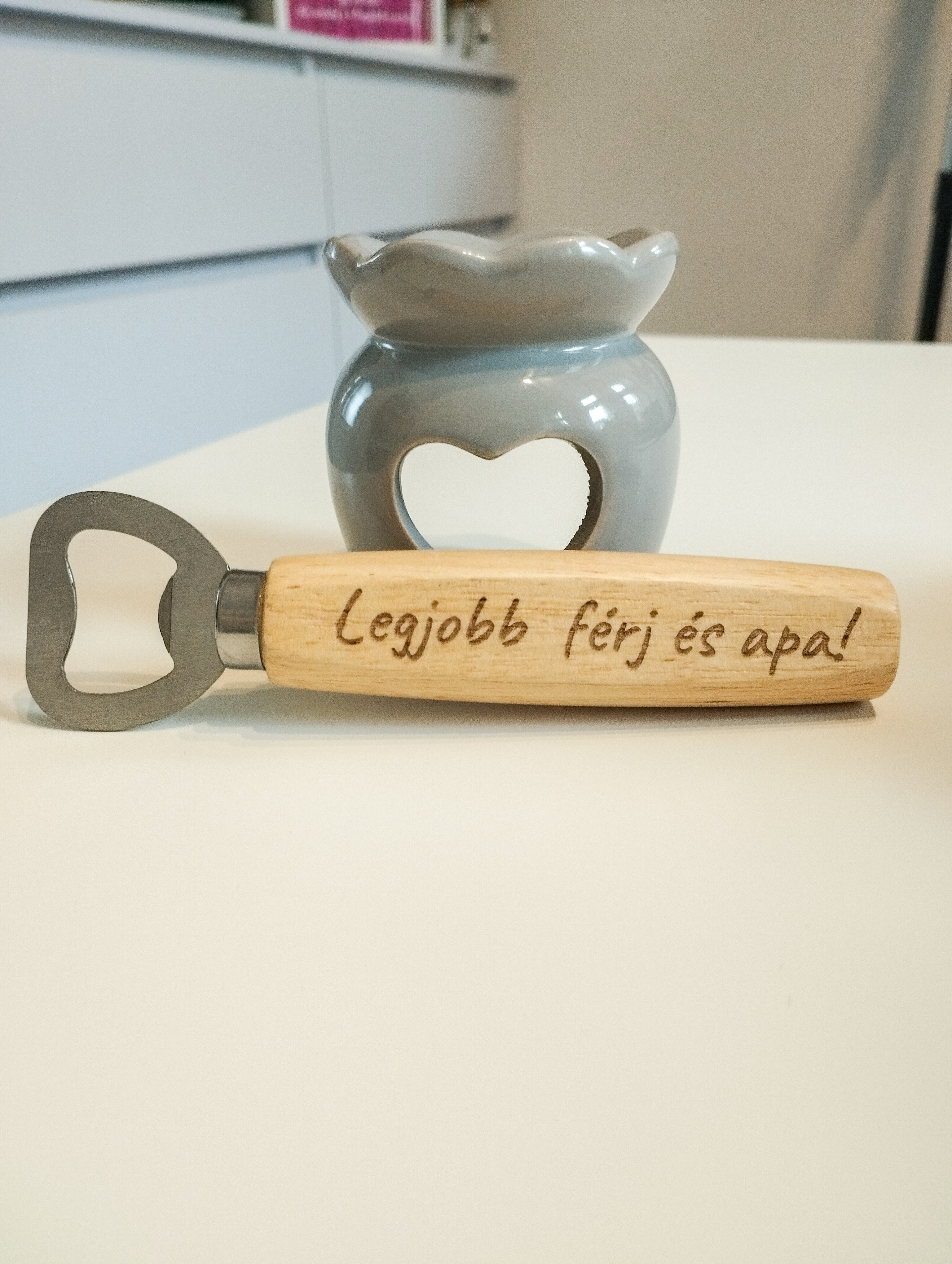 A gravírozott fa nyelű sörnyitó nemcsak praktikus, hanem szerethető ajándék is, tökéletes választás bármilyen alkalomra, amikor egy hű társra van szükség egy hideg ital mellé.